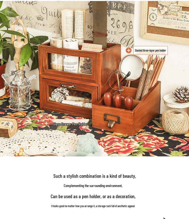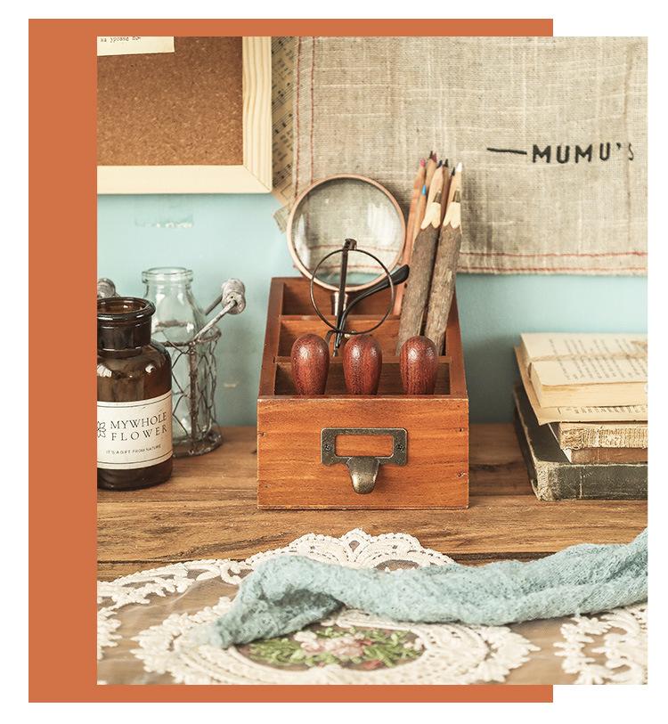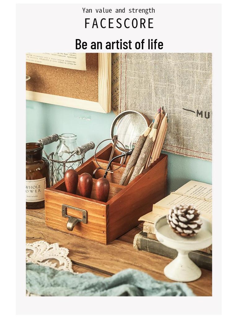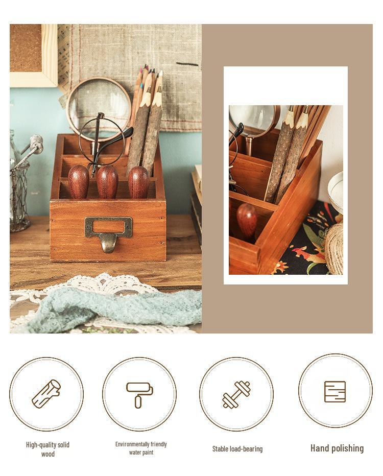 Деревянный настольный органайзер: Подставка для пульта и канцелярский ящик для офиса или кистей для макияжа