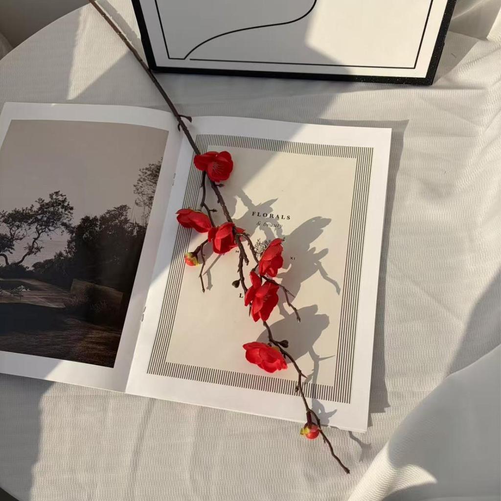 Искусственный зимний букет из цветков персика и сливы для украшения интерьера