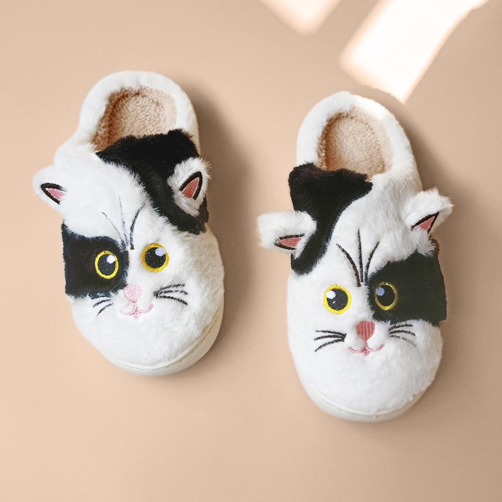 Новые осенне-зимние унисекс милые хлопковые тапочки с вышивкой кошки - Теплые и уютные, в европейском/американском стиле