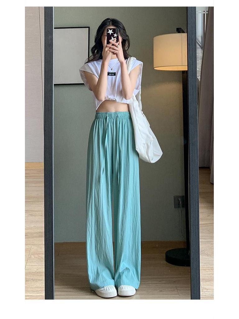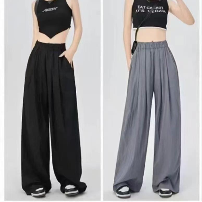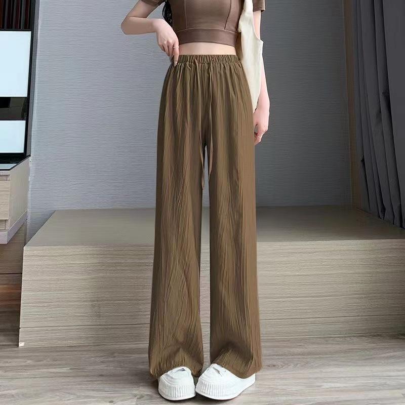 Женские брюки с высокой талией из ледяного шелка с широкими штанинами - Лето 2025: Легкий, Не мнущийся, Повседневный Драпированный Плиссированный Дизайн