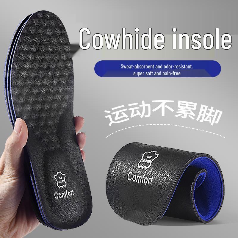 Мужские стельки из натуральной коровьей кожи с амортизацией - Дышащие, Влагопоглощающие, Антибактериальные и Удобные.
