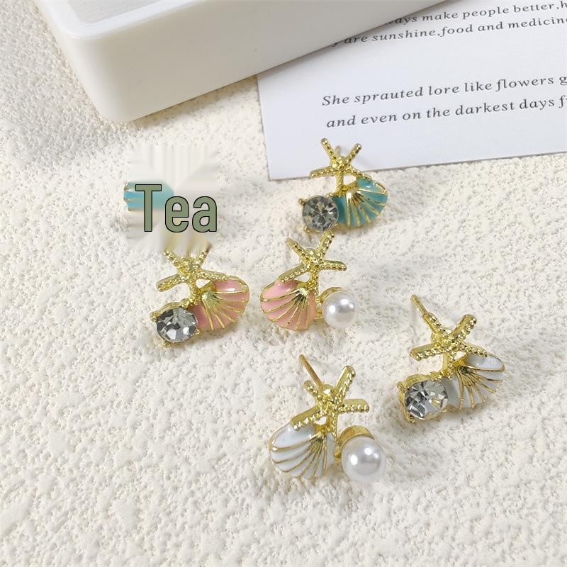 Корейские серьги-пусеты с жемчугом в виде ракушки морской звезды - Универсальные женские украшения для морского отдыха 2023