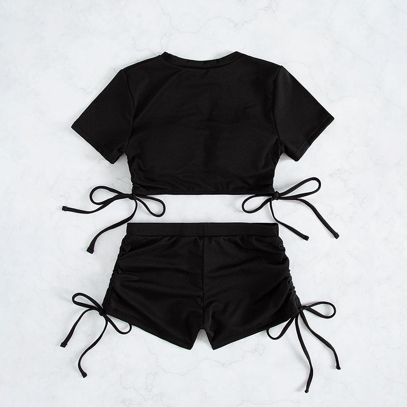 Откройте для себя идеальное сочетание стиля и комфорта с этим спортивным бикини с коротким рукавом на шнуровке, разработанным для женщин.. Этот купальник, изготовленный из высококачественного полиэстера, имеет однотонный узор, который излучает элегантность и простоту.. Его уникальный дизайн со шнуровкой добавляет модный акцент, обеспечивая при этом надежную и регулируемую посадку.. Идеальное для европейского и американского вкусов, это бикини идеально для того, чтобы сделать смелое заявление на пляже или у бассейна.. Примите спортивную, но шикарную атмосферу и наслаждайтесь летом с уверенностью.