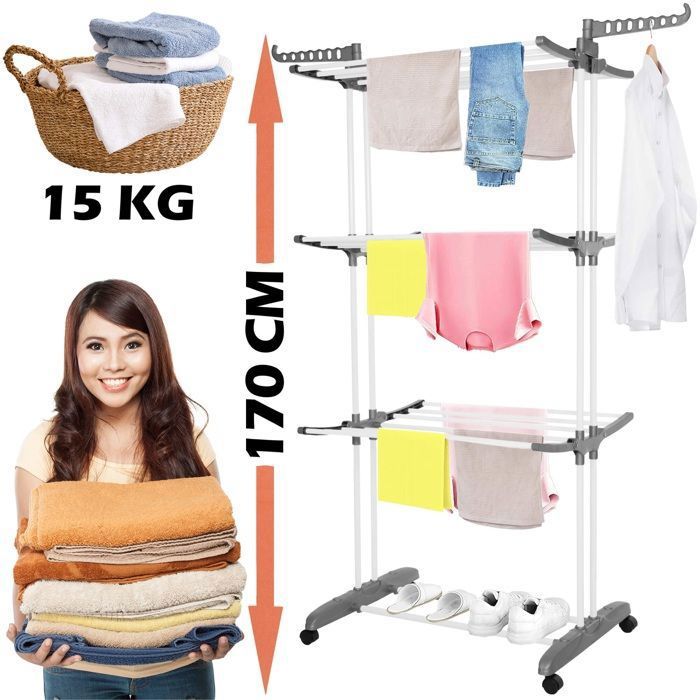 Séchoir à linge sur roulettes - SPRINGOS - 4 niveaux - Ailes pliables - Capacité 15 kg - Design compact — купить товар онлайн с бесплатной доставкой по всему миру!