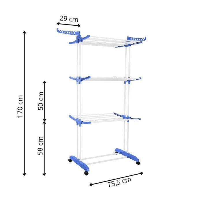 Séchoir à linge sur roulettes - SPRINGOS - 4 niveaux - Ailes pliables - Capacité 15 kg - Compact