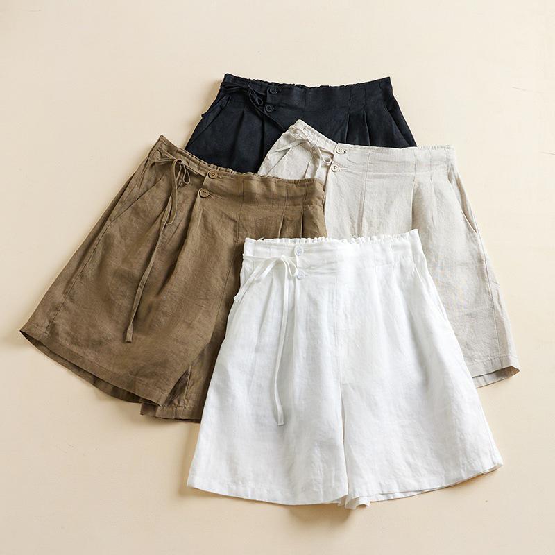 Женские летние разноцветные шорты из хлопка и льна с эластичной спинкой, широкими штанинами, свободного кроя, повседневные, больших размеров