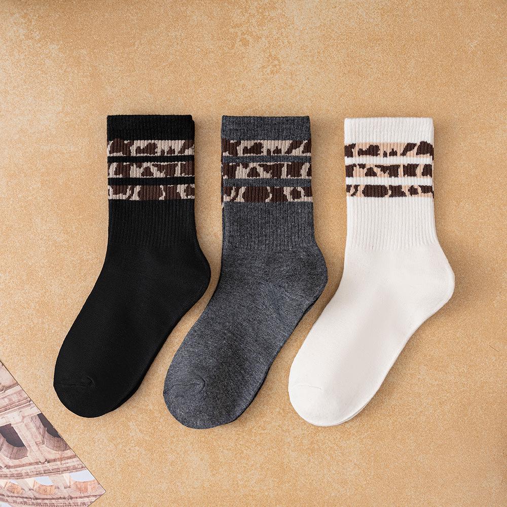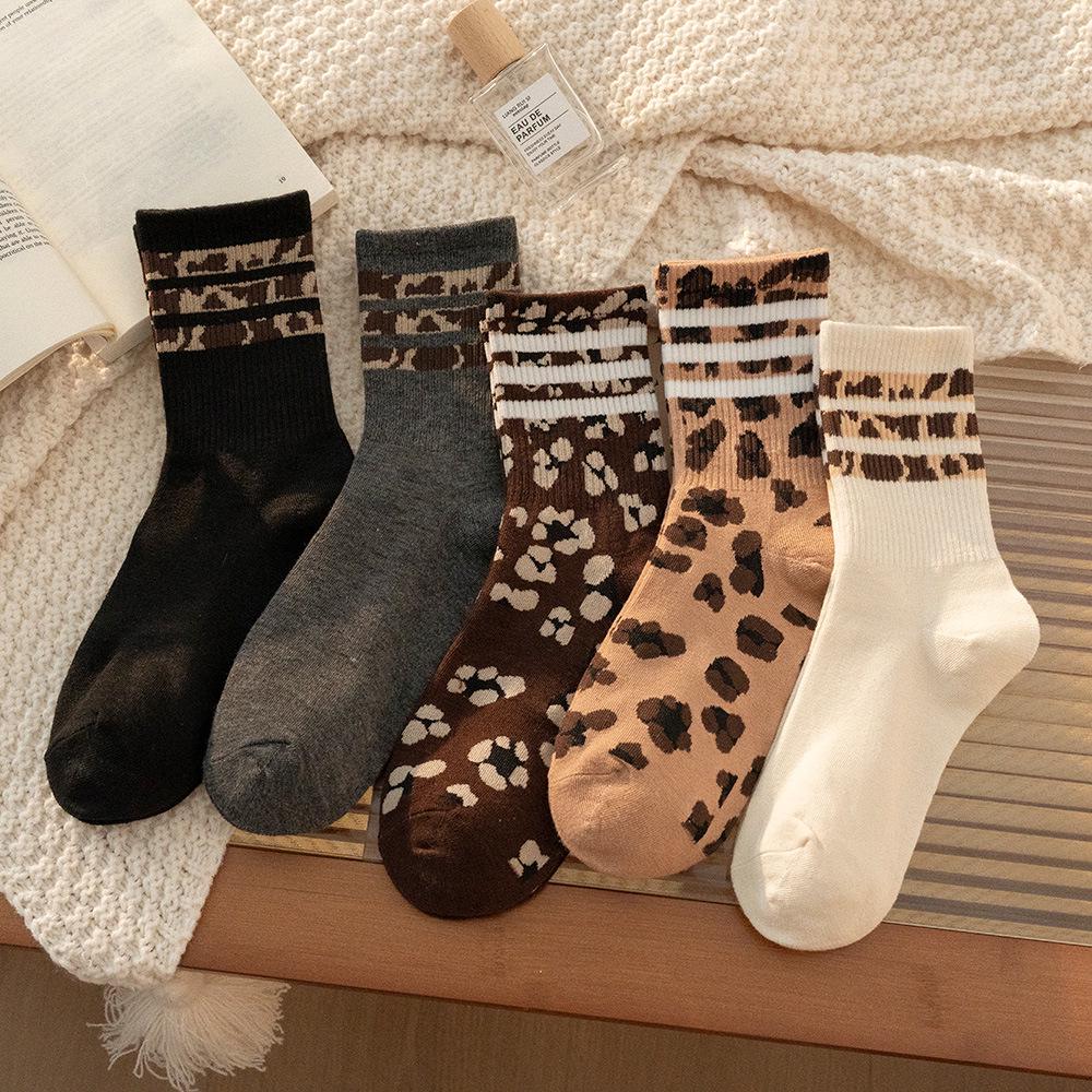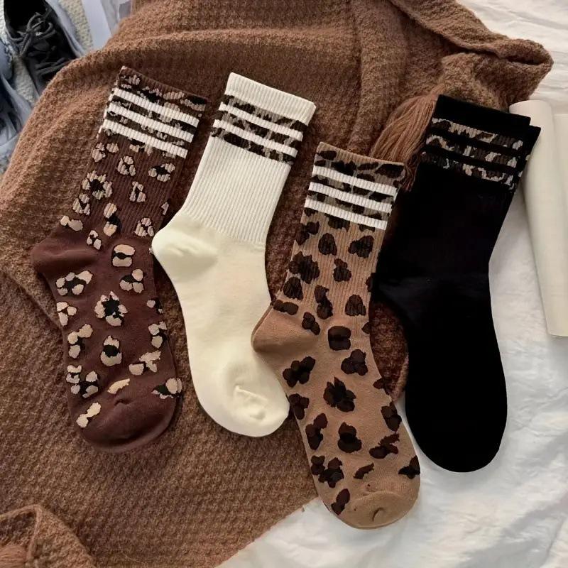 Женские носки до середины икры - в горошек и с леопардовым принтом, модный корейский стиль, гольфы, универсальные, нескользящие, весенне-осенняя мода.