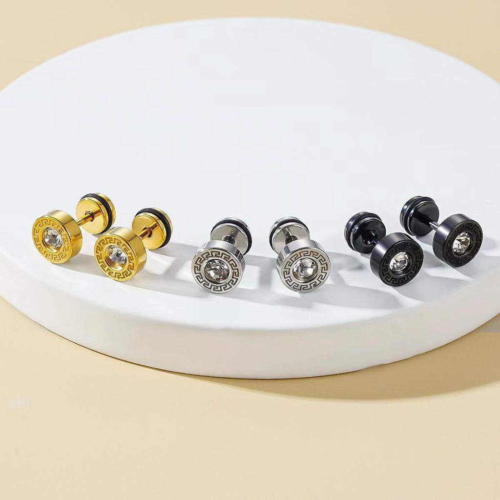 Унисекс Модные Ретро Круглые Серьги из Нержавеющей Стали с Бриллиантами в Виде Великой Китайской Стены