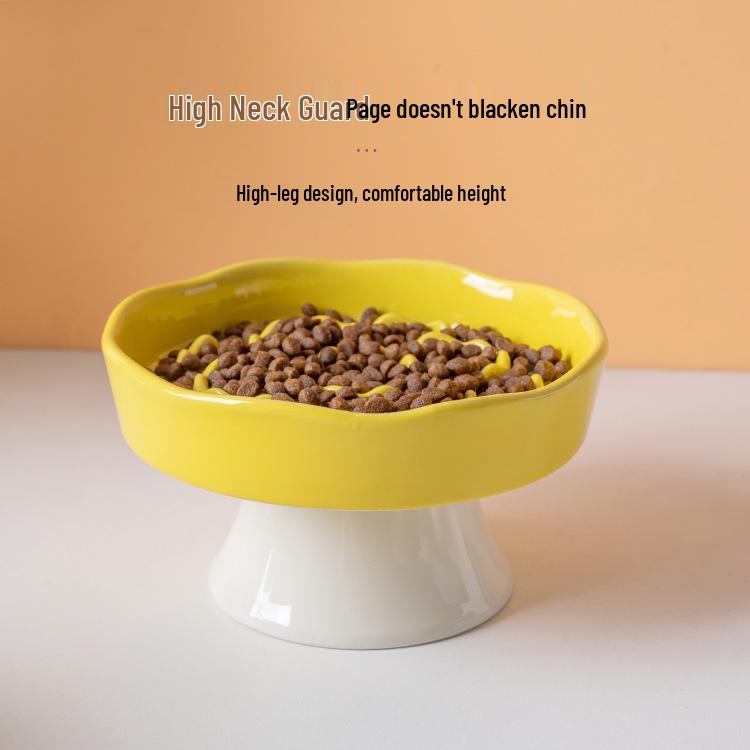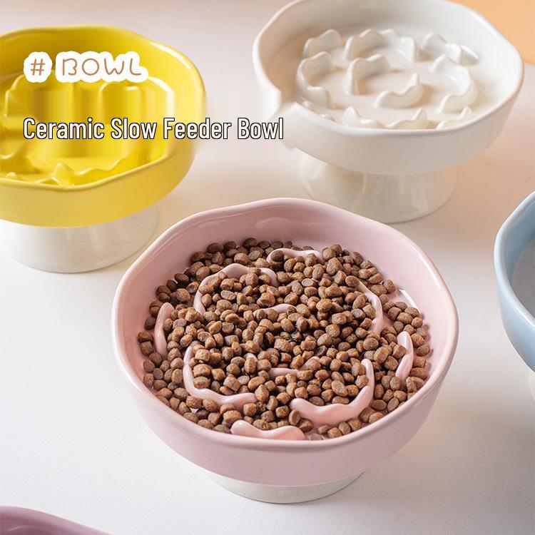 Керамическая миска-медленное кормление на высокой ножке - Против удушья, Защита шеи, Устойчивая конструкция для кошек и собак