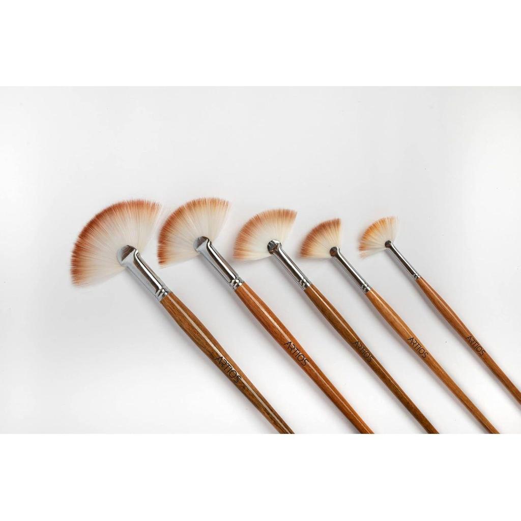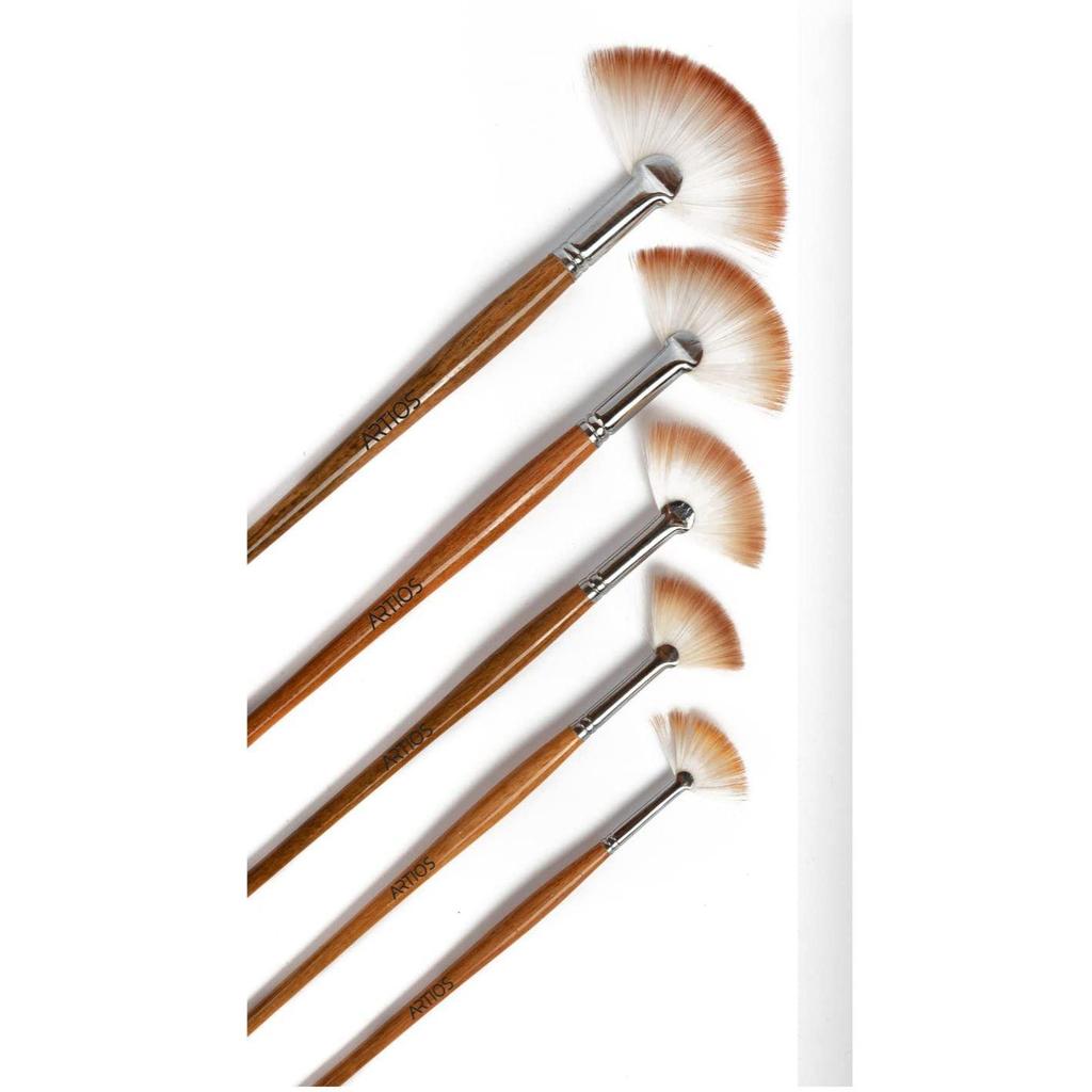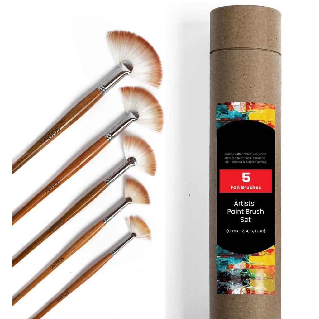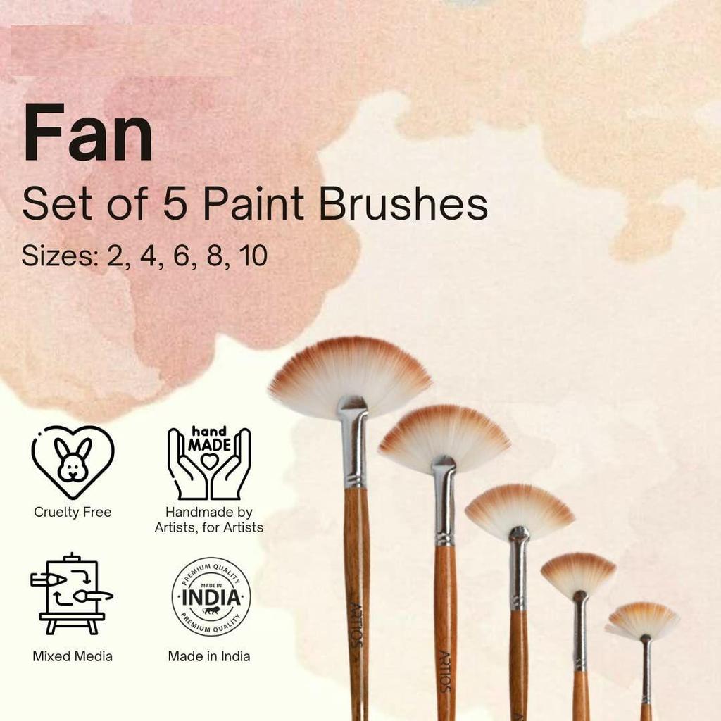 Набор веерных кистей для рисования/Набор профессиональных кистей ручной работы для рисования акрилом, акварелью и гуашью с подставкой для кистей - Не тестируется на животных (5 Веерных кистей)(Дерево), Синтетическая щетина