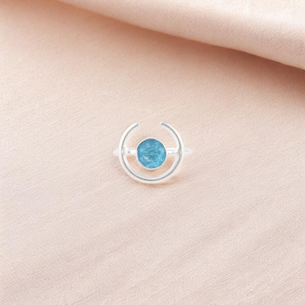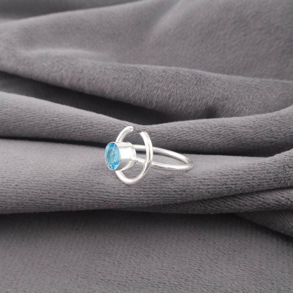 Кольцо с драгоценным камнем швейцарский голубой топаз 925 проба серебро ручная работа ювелирное изделие подарок для матери