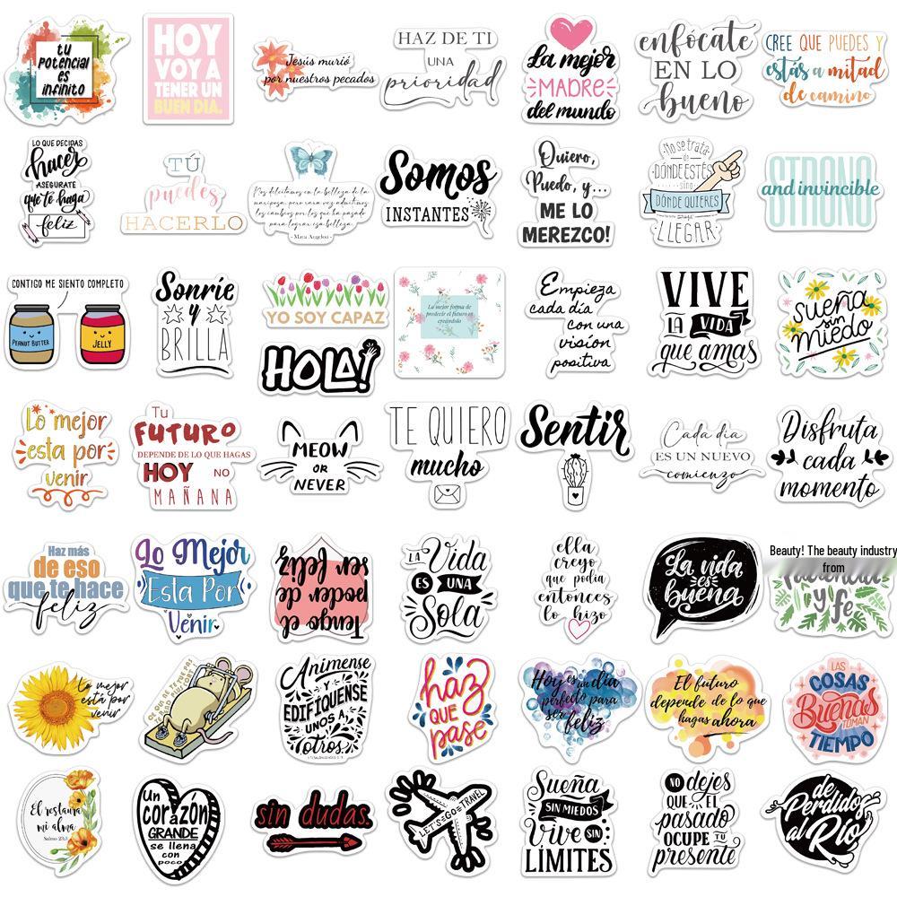 50 Waterproof Spanish Motivational Graffiti Stickers for DIY Decoration on Suitcase or Guitar