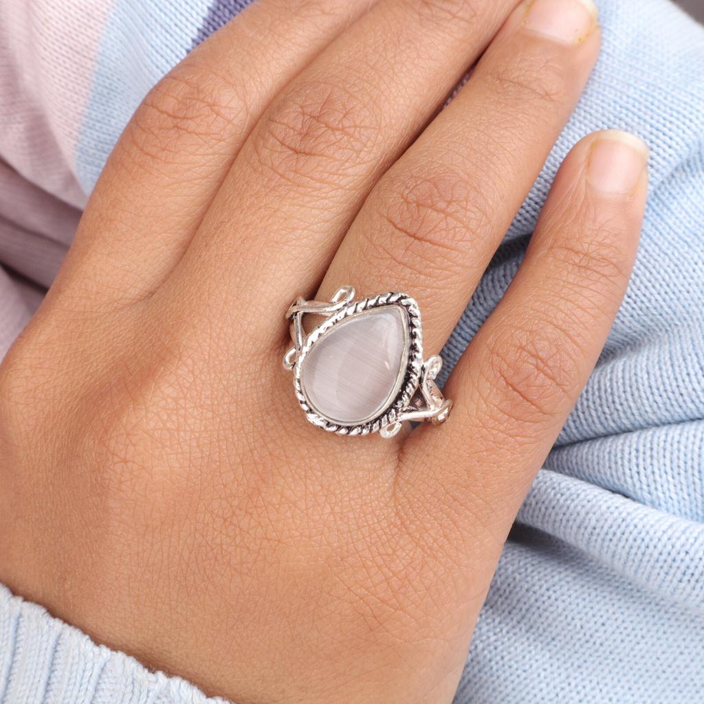 Селенит Драгоценный камень Ювелирное изделие из стерлингового серебра 925 пробы Ручной работы Заявление Кольцо для женщин