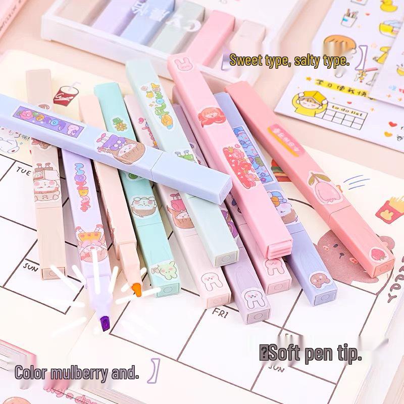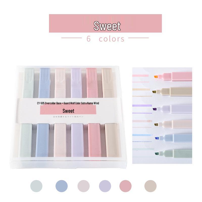 Креативный набор хайлайтеров с мягким наконечником 6 цветов для ведения дневника и студентов