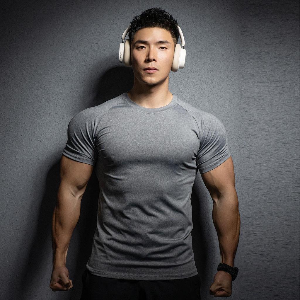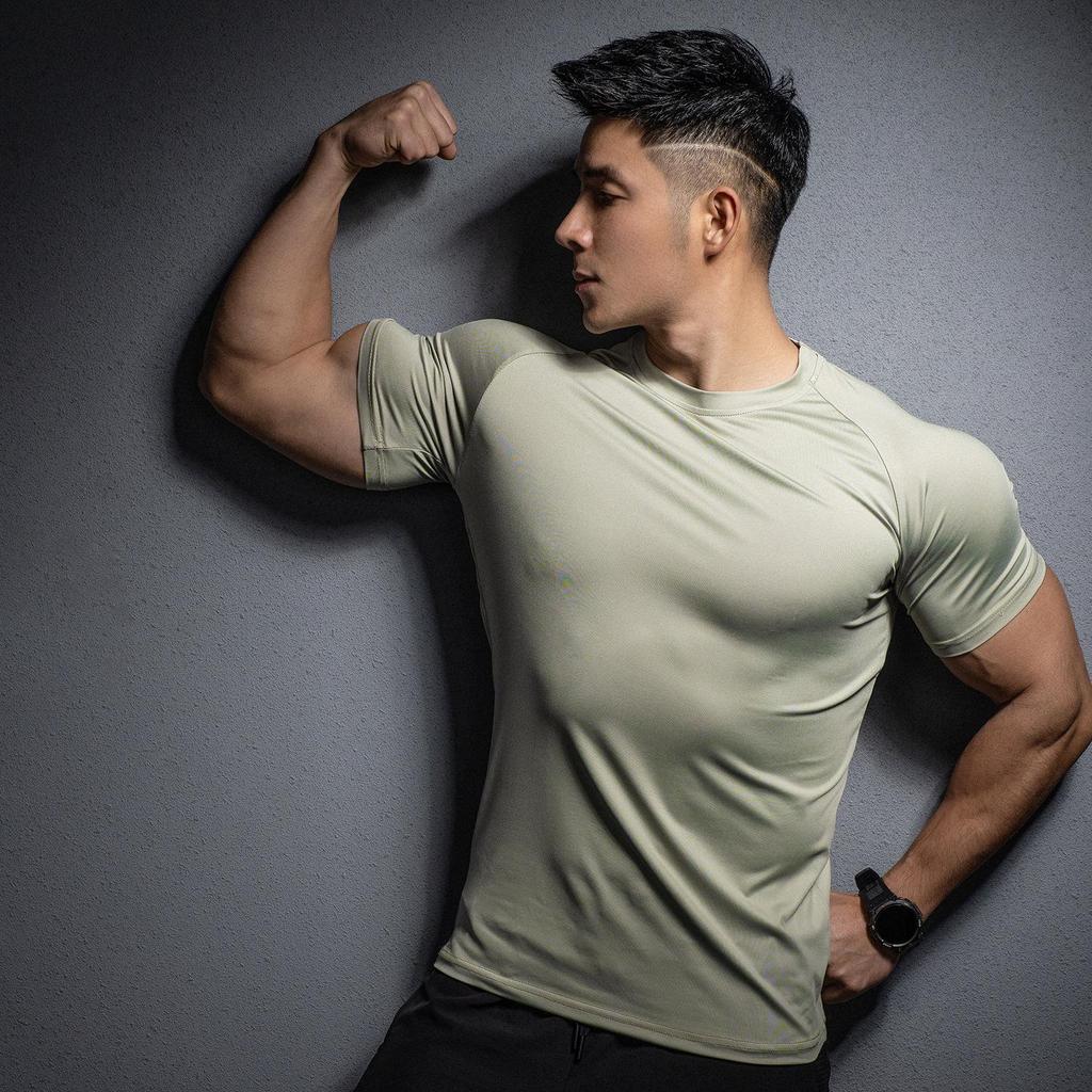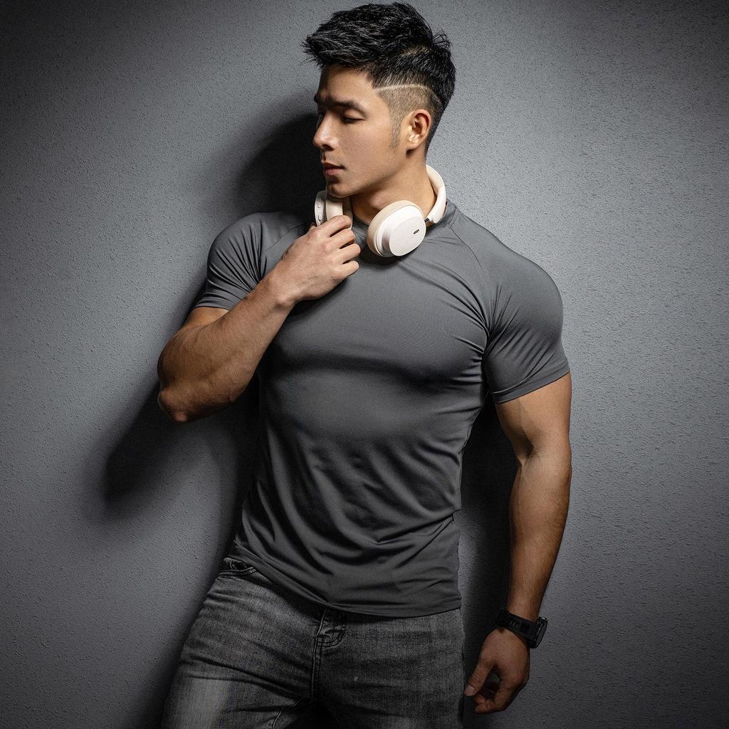 Мужская быстросохнущая футболка с коротким рукавом и эластичной тканью для спортзала и бега