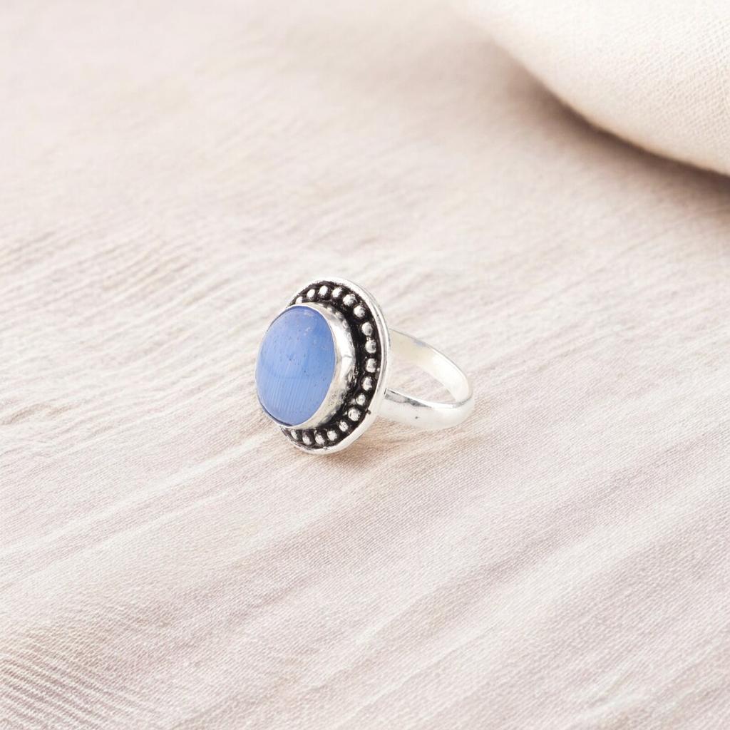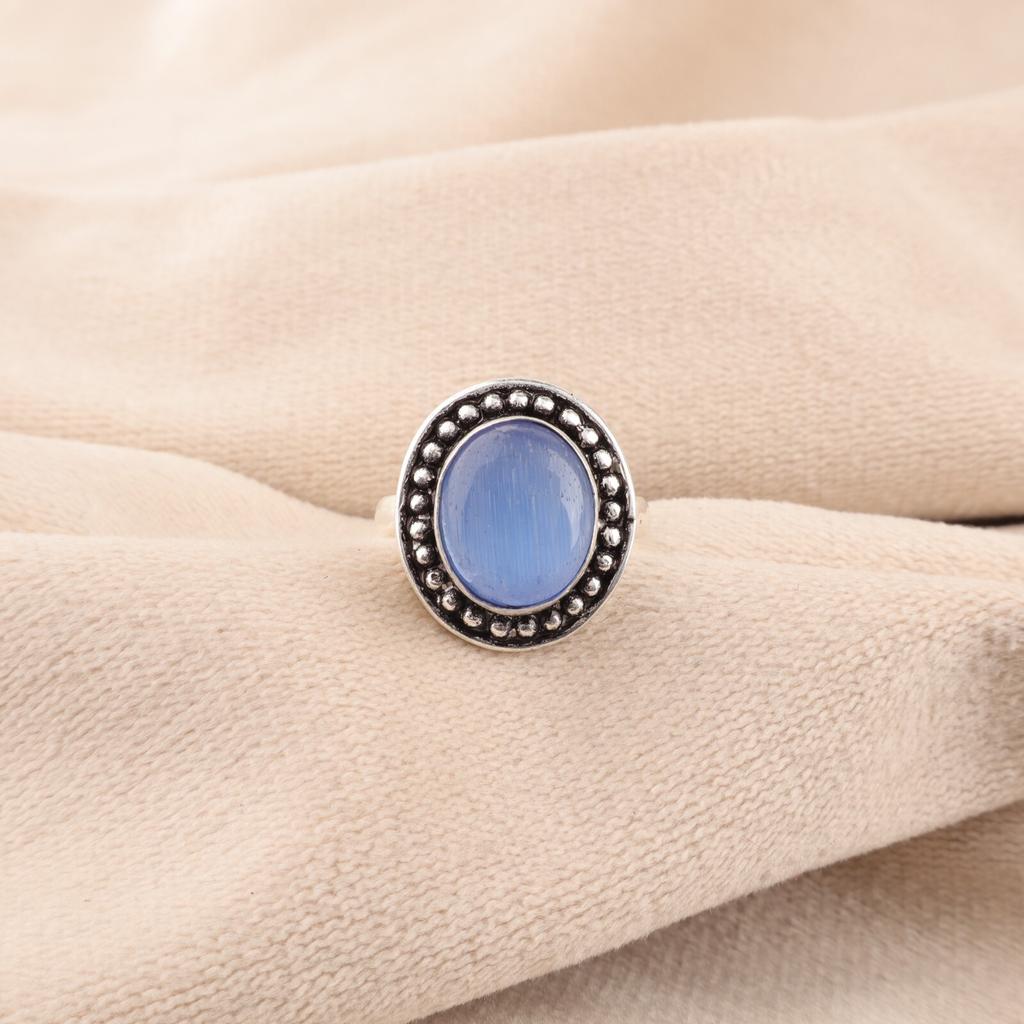 Темно-синий камень «кошачий глаз» Серебро 925 пробы Ручной работы Помолвочное кольцо для нее
