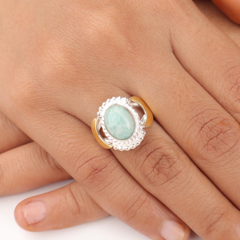 Настоящий Амазонит Драгоценный Камень 925 Стерлинговое Серебро Ювелирные Изделия Ручной Работы Кольцо на День Рождения RR-61-42