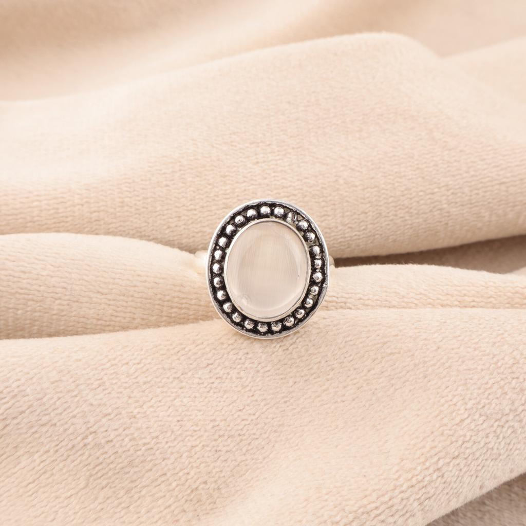 Селенит Драгоценный камень Серебро 925 пробы Ювелирные изделия Кольцо ручной работы Подарок для девушки