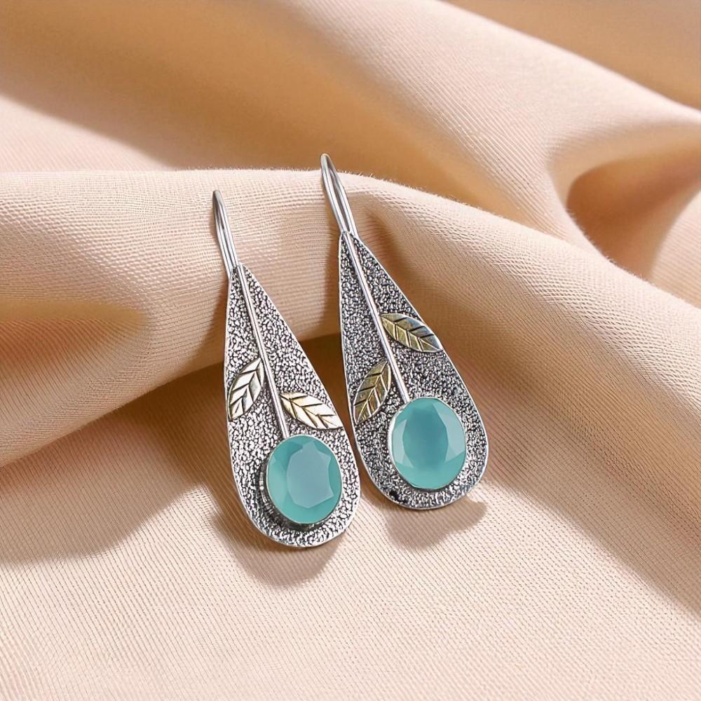 Аква Халцедон Драгоценный Камень 925 Стерлинговое Серебро Ювелирные Изделия Ручной Работы Серьги 2.00" EE-72-15