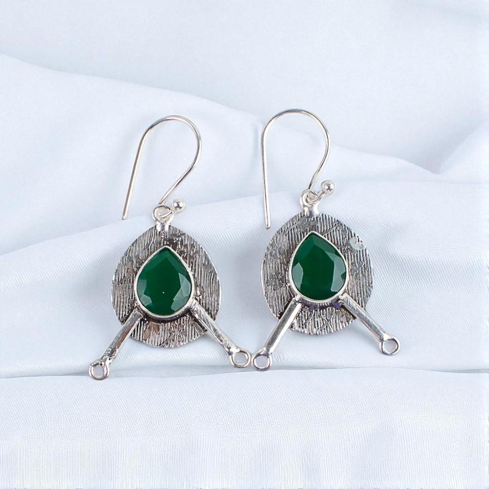 Зеленый Оникс Драгоценный Камень Серебро 925 пробы Ювелирные Изделия Ручной Работы Висячие Серьги 1.86" EE-78-17
