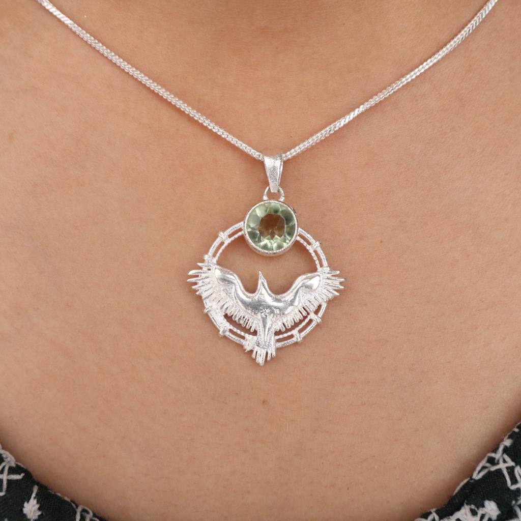 Зеленый Аметист Драгоценный Камень 925 Стерлинговое Серебро Ювелирное Изделие Подвеска 1,43" Подарок для Женщин CP-38-15