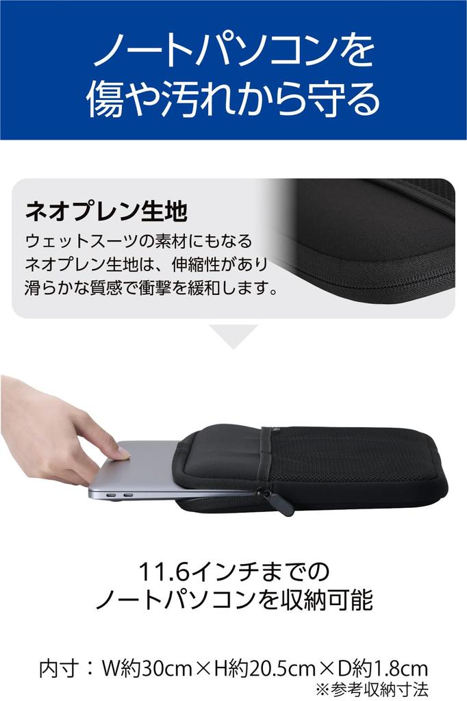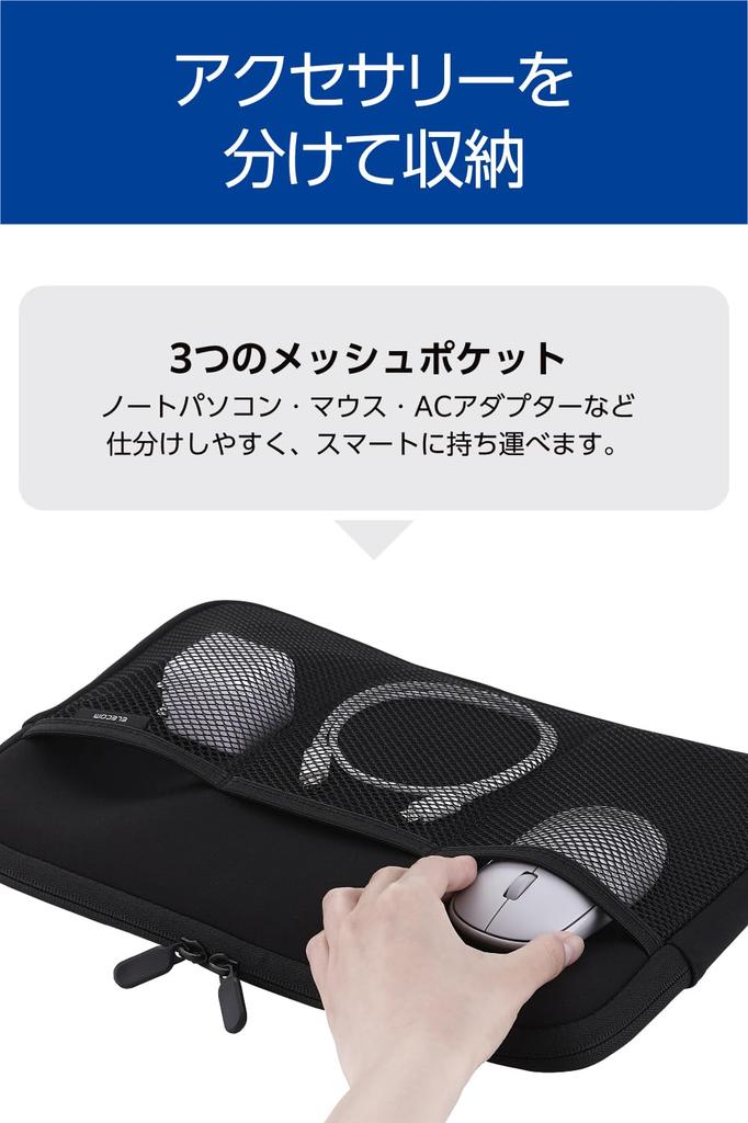 ELECOM Neoprene Laptop Inner Case, 11.6-inch, 3-Pocket Bag, Black, BM-IB3PT11BK