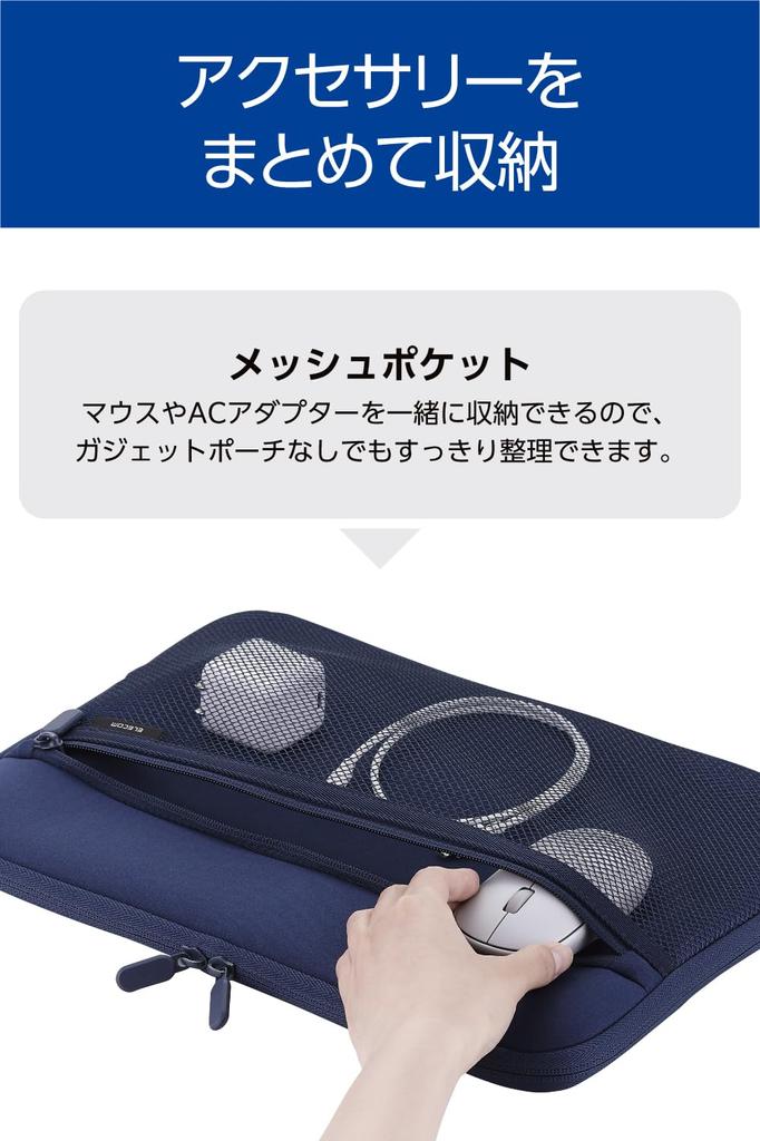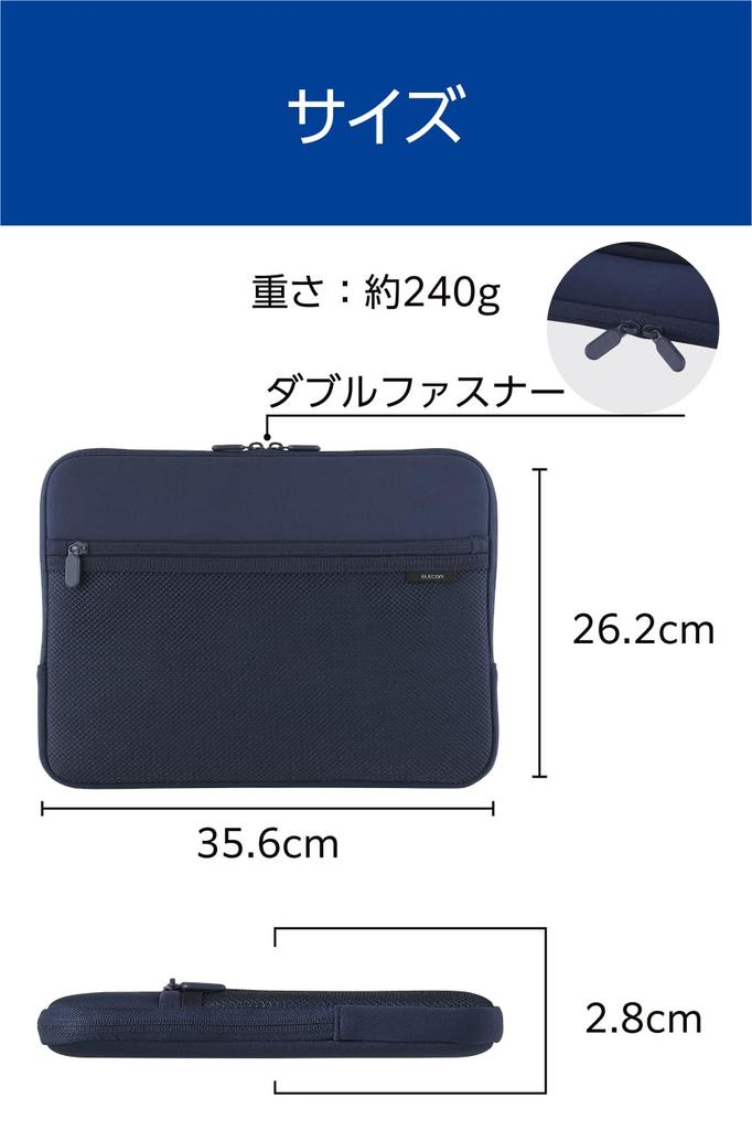 ELECOM Neoprene Laptop Case with Zipper Fits PCs Pocket, Navy, BM-IBPTNP14NV, 14-inch