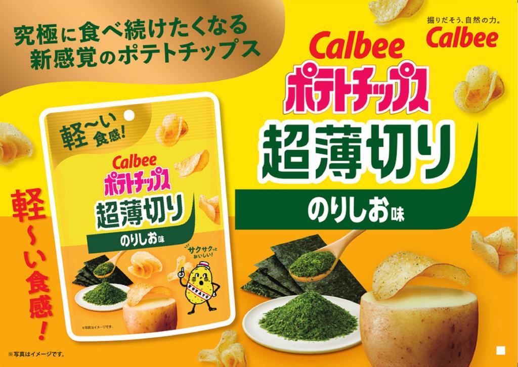 Calbee Potato Супер Тонкие Морские водоросли и Соль 40г х 12 пакетов Чипсы, Нарезанные, Вкус,