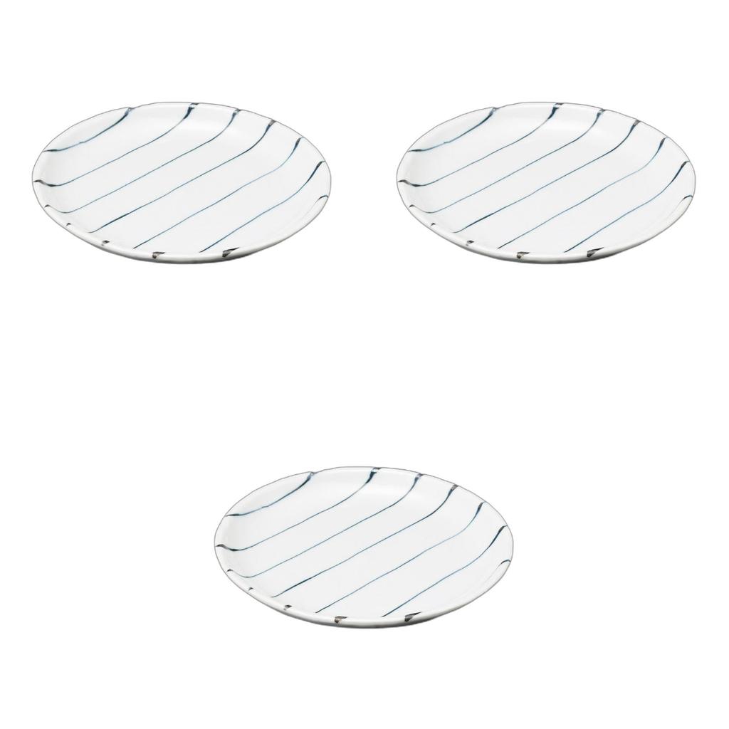 Набор из 3 полосатых круглых тарелок x Средние керамические тарелки от Setomonohonpo 7.0мм [21.2 2.2см]