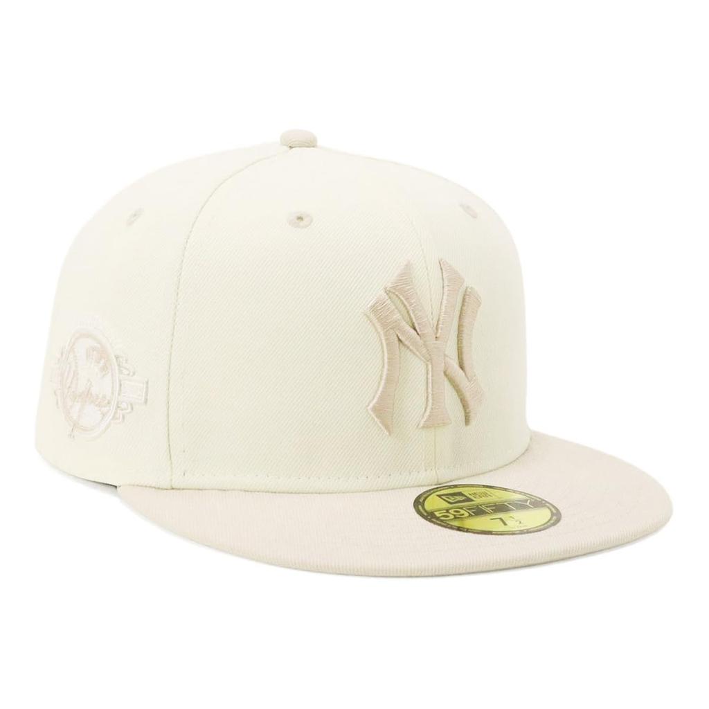 New Era 59Fifty Baseball Cap, Men's and Women's, with Side Patch, NY/LA/MLB, New York Yankees, ONSPOTZ, Custom Order, White, Stylish, Popular, Spring, Summer, Fall, Winter, All Seasons, New Era, Large and Small Sizes Available, Authentic, 59Fifty, 2-Tone Color, Chrome Stone Side Patch, MLB