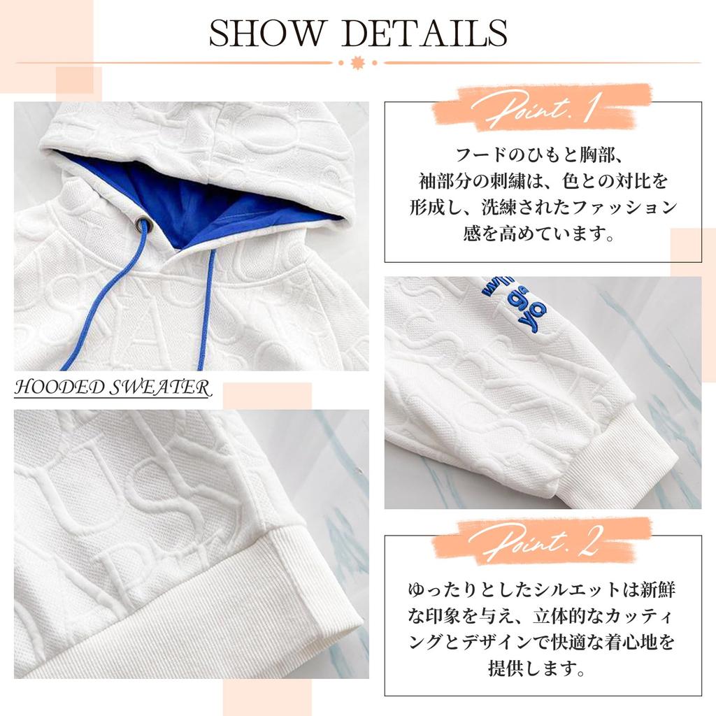 [Трехмерный английский узор и дизайн вышивки] Изготовлено из высококачественного материала с мягким прикосновением, обладает отличным влагопоглощением и воздухопроницаемостью. Простой дизайн и умеренно свободный силуэт позволяют легко сочетать его с любым стилем и подходят для любого наряда.. Тканевая отделка представляет собой трехмерный английский принт на поверхности изделия, который гармонирует с цветом основной части.. Может выглядеть просто, но у него изысканный и модный вид.. Вышивка на шнурке капюшона, груди и рукавах создает контраст с цветом, подчеркивая изысканный и модный вид.