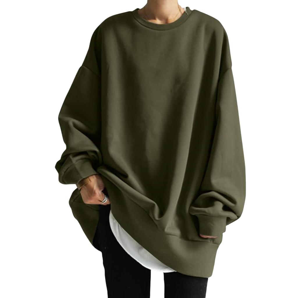 Long Sleeve Brushed Fleece Round Loose Plus Oversized Solid Korean [MlleeSSeeldyTRC] Women's Hoodie, Pullover, Neck, Fit, Size, Sweatshirt, Color,