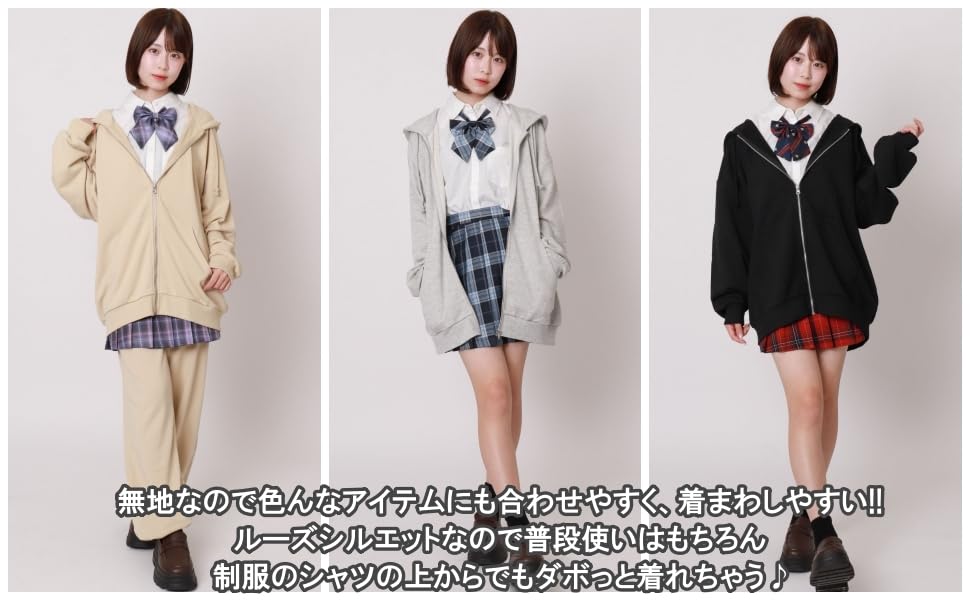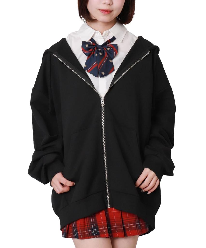 WEGO Большой Зип Свободный Большой Размер Длинный для Старшей Школы и Идеально для и Осени и Зимы Тип F Черная Женская Толстовка, Посадка, Свитшот, Рукав, Студенты,