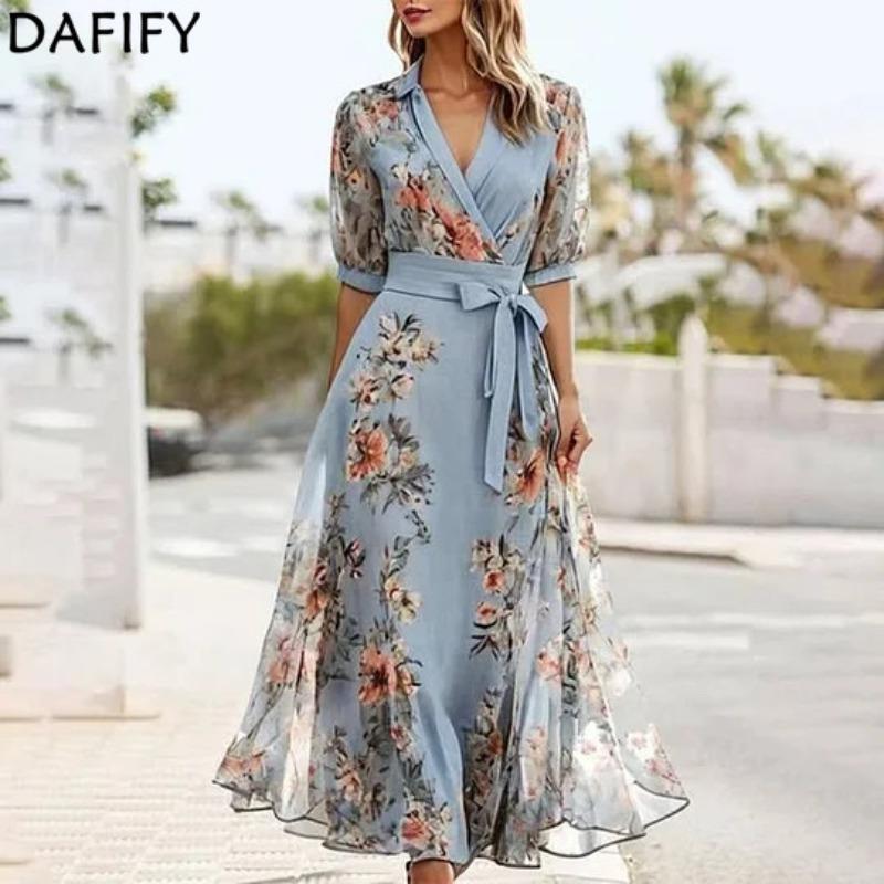 DAFIFY Женская мода лето весна цветочный узор принт короткий рукав ПОЛО шеи Высокая талия повседневные платья