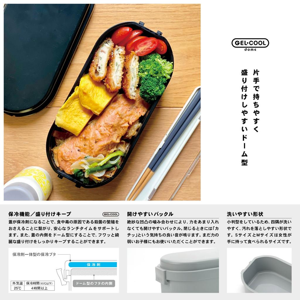 Miyoshi Seisakusho Lunch Box with Integrated Ice Dome Caviar GEL-COOL Pack, L, Black, 0101-0174