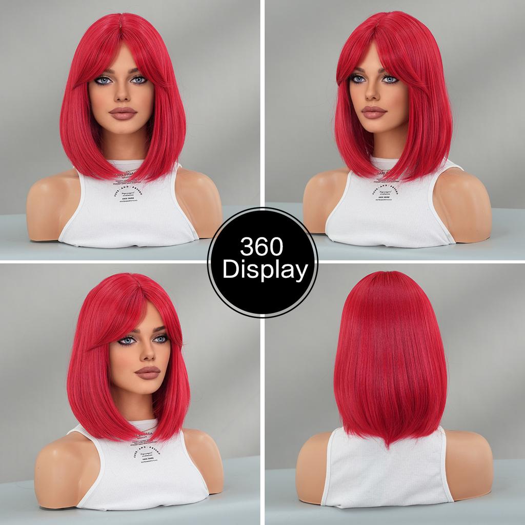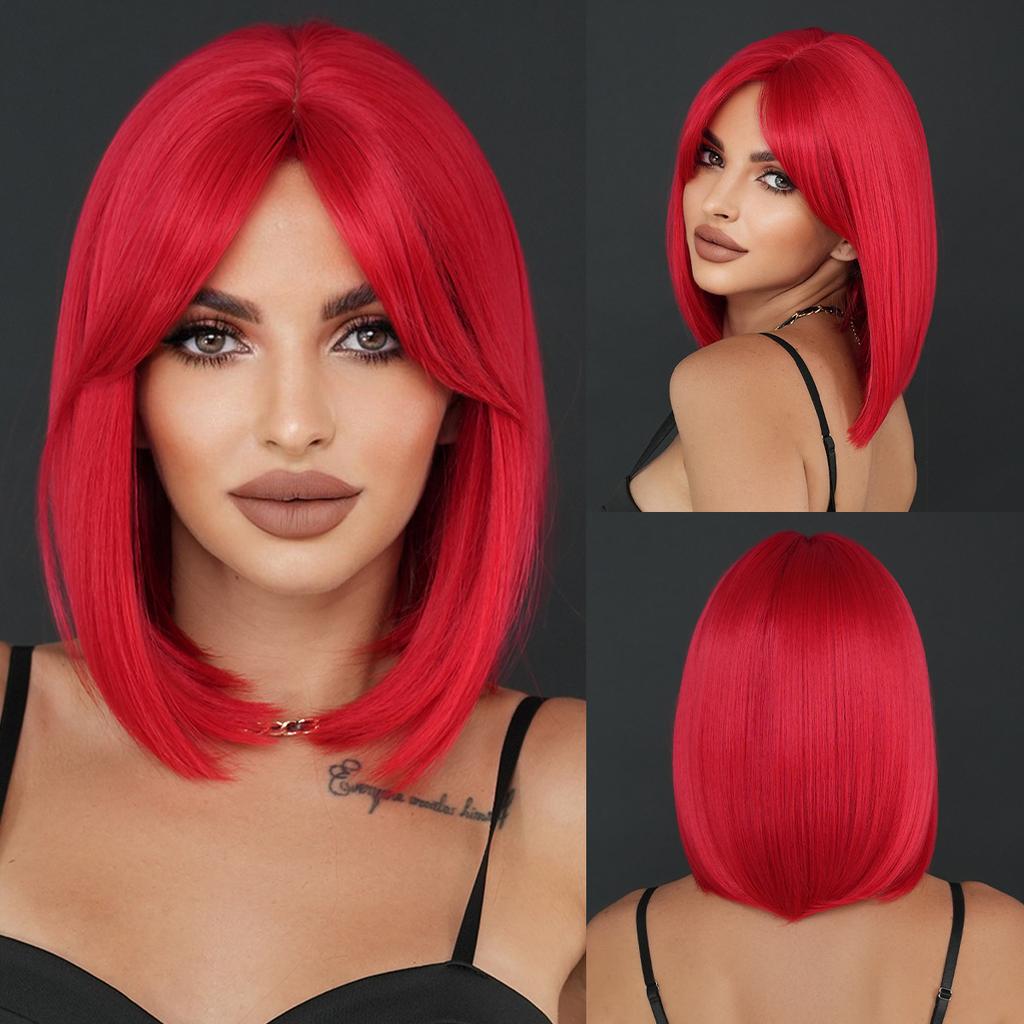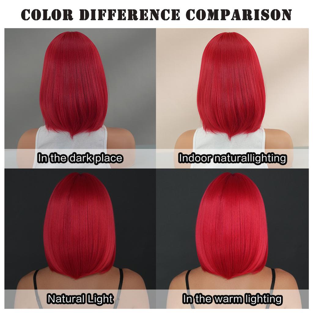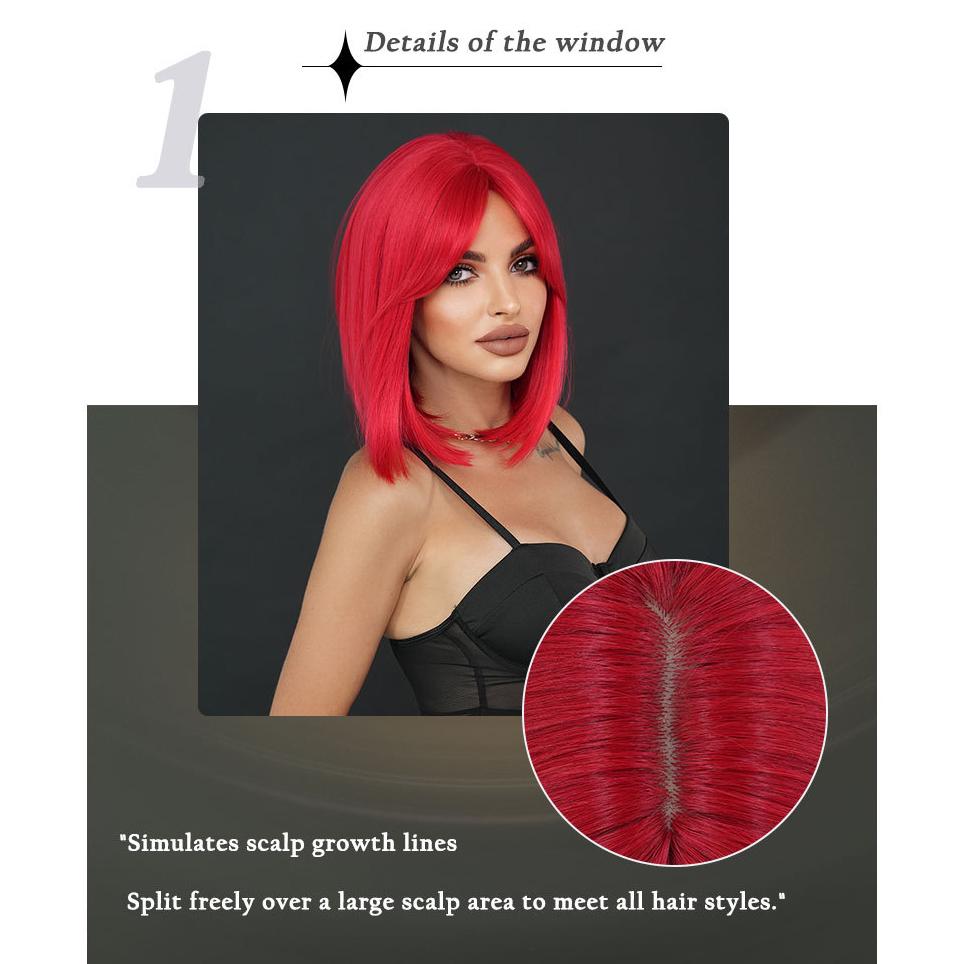 【Незаменимый стиль для вечеринки】Потрясающий красный короткий прямой парик, классическая стрижка боб с модной средней проборкой и челкой-шторкой, идеально создает образ для фестивальной вечеринки! Подходит для Хэллоуина, Пасхи, тематических вечеринок и других случаев.