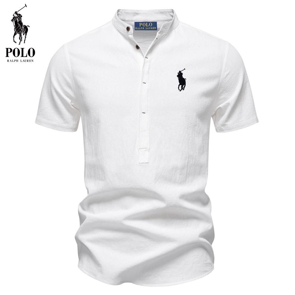 Polo Ralph Lauren Весна/Лето Пони Вышитая Деловая Повседневная Рубашка Мужская Хлопковая Льняная Рубашка С Короткими Рукавами Хлопковая Рубашка Воротник-стойка