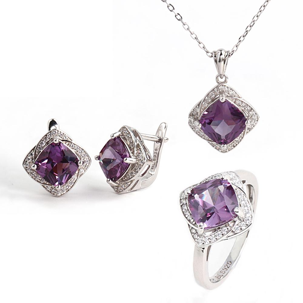 Кольцо серьги подвеска ожерелье из стерлингового серебра 925 пробы Созданный квадрат 8,0 мм Александр нано элегантные изящные украшения для женщин для повседневной носки