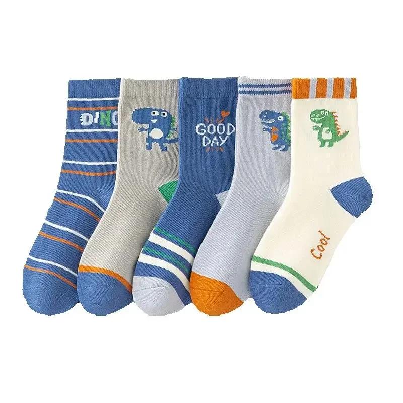 5 пар детских носков средней длины Randy Little Dinosaur, мягкие и деликатные, влагоотводящие и дышащие, милые носки для мальчиков 1-14 лет