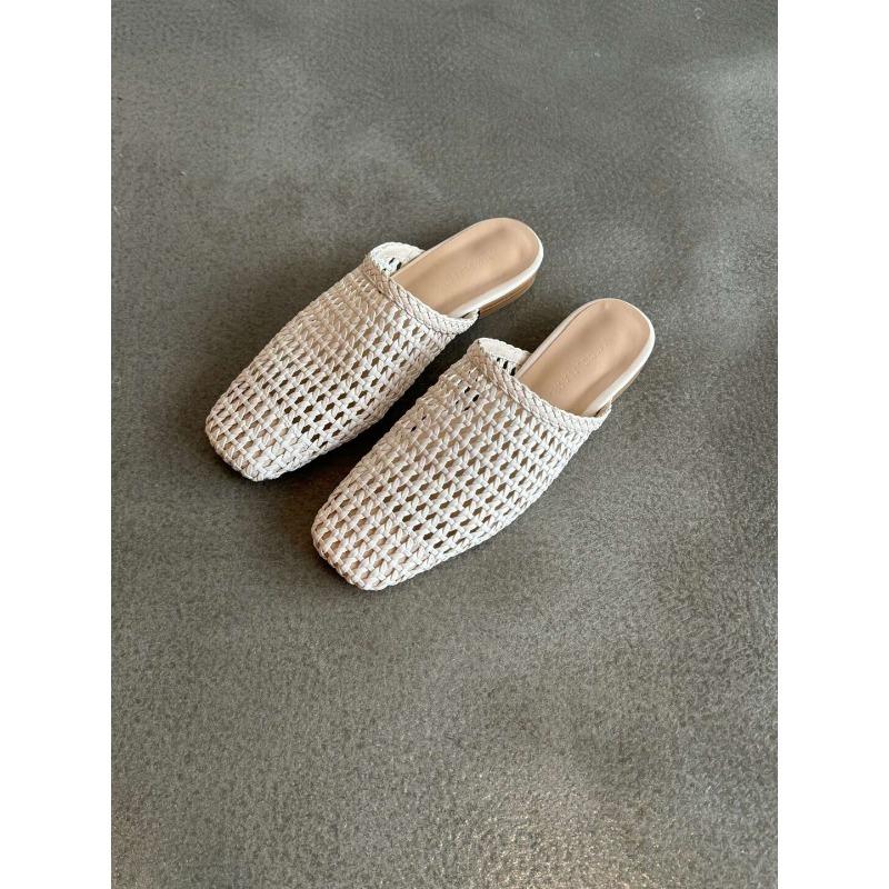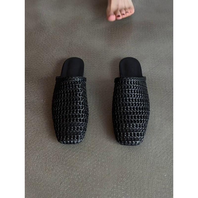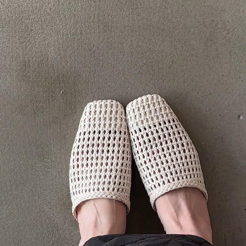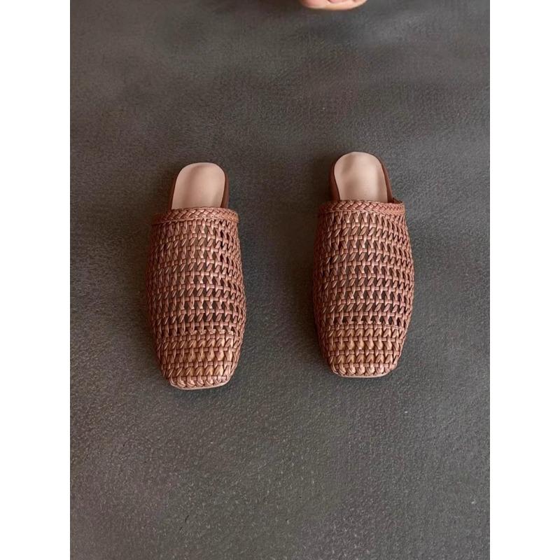 Овечья кожа версия новой плетеной полой сумки голова полушлепанцы женские летние носить плоская подошва квадратный носок модные ленивые крутые шлепанцы