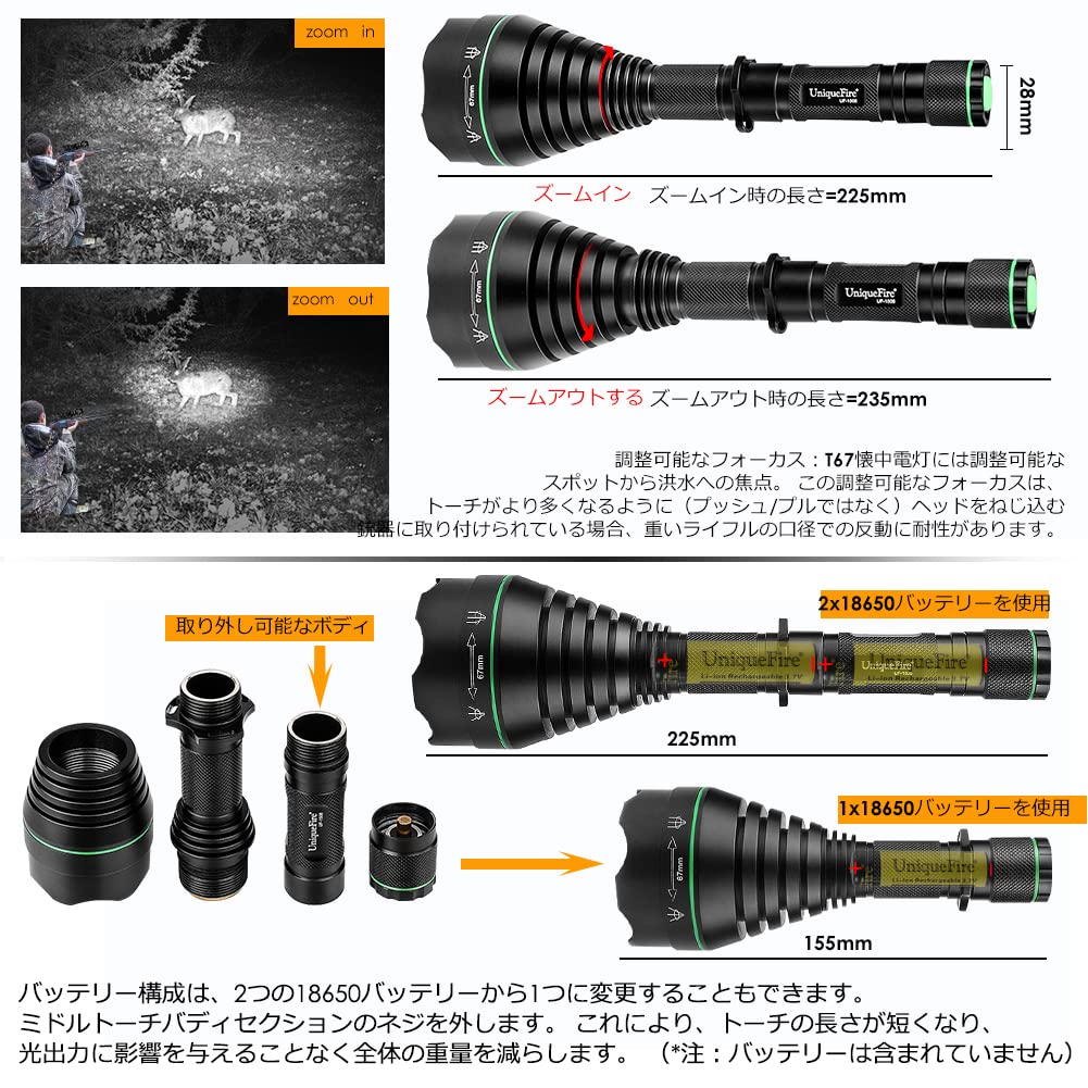 [Оснащен функцией масштабирования] Путем вращения головки основного блока (не самый передний край, а ближе к середине), Вы можете отрегулировать широкий луч для освещения ближней зоны и точечный луч для освещения дальней зоны.