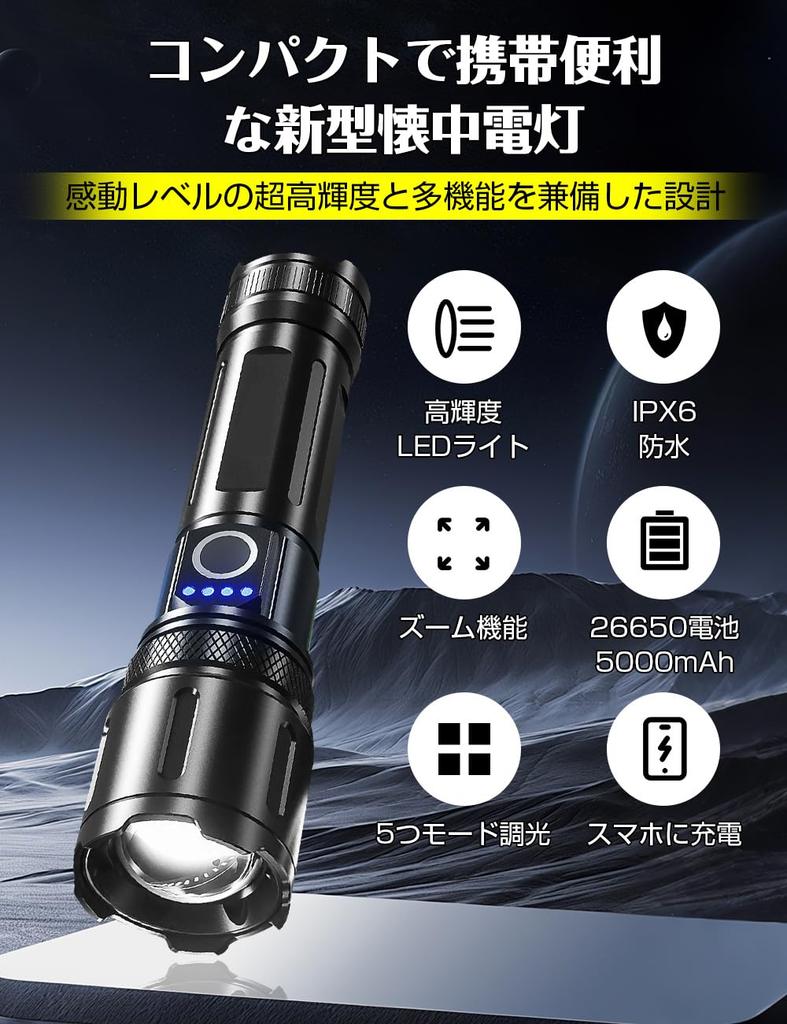 Новый Мощный Аккумулятор 26650 Совместимый с AAA USB IPX6 Высокий 5 Режимов Алюминиевый Сплав 2М Новый Уровень Заряда Идеально для Ночи Ночного Времени Энергия Катастрофы
