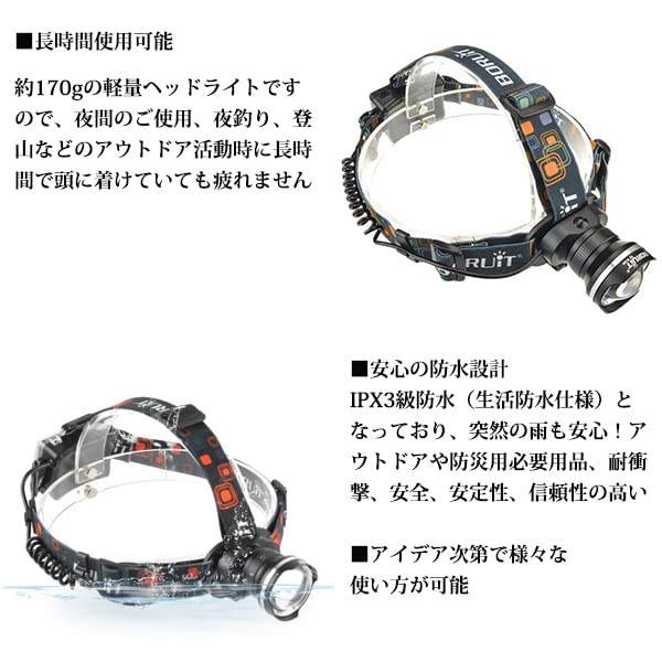 [Легкий] Этот налобный фонарь весит примерно 170 г, поэтому вы не устанете, даже если будете носить его долгое время во время активного отдыха, такого как ночная рыбалка или альпинизм.