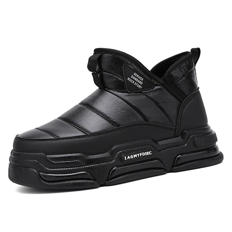 Однопедальные хлопковые туфли среднего размера, с набивным рисунком и утолщенной подошвой, теплые мужские ботинки, зимние, новые, водонепроницаемые, черные, снегоступы