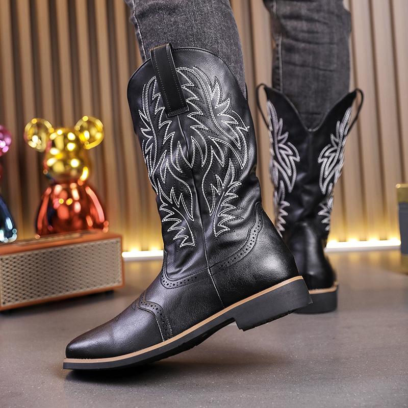 Retro style high-top trendy cowboy boots large size men's long boots autumn and winter outdoor fashion leather boots 2025
