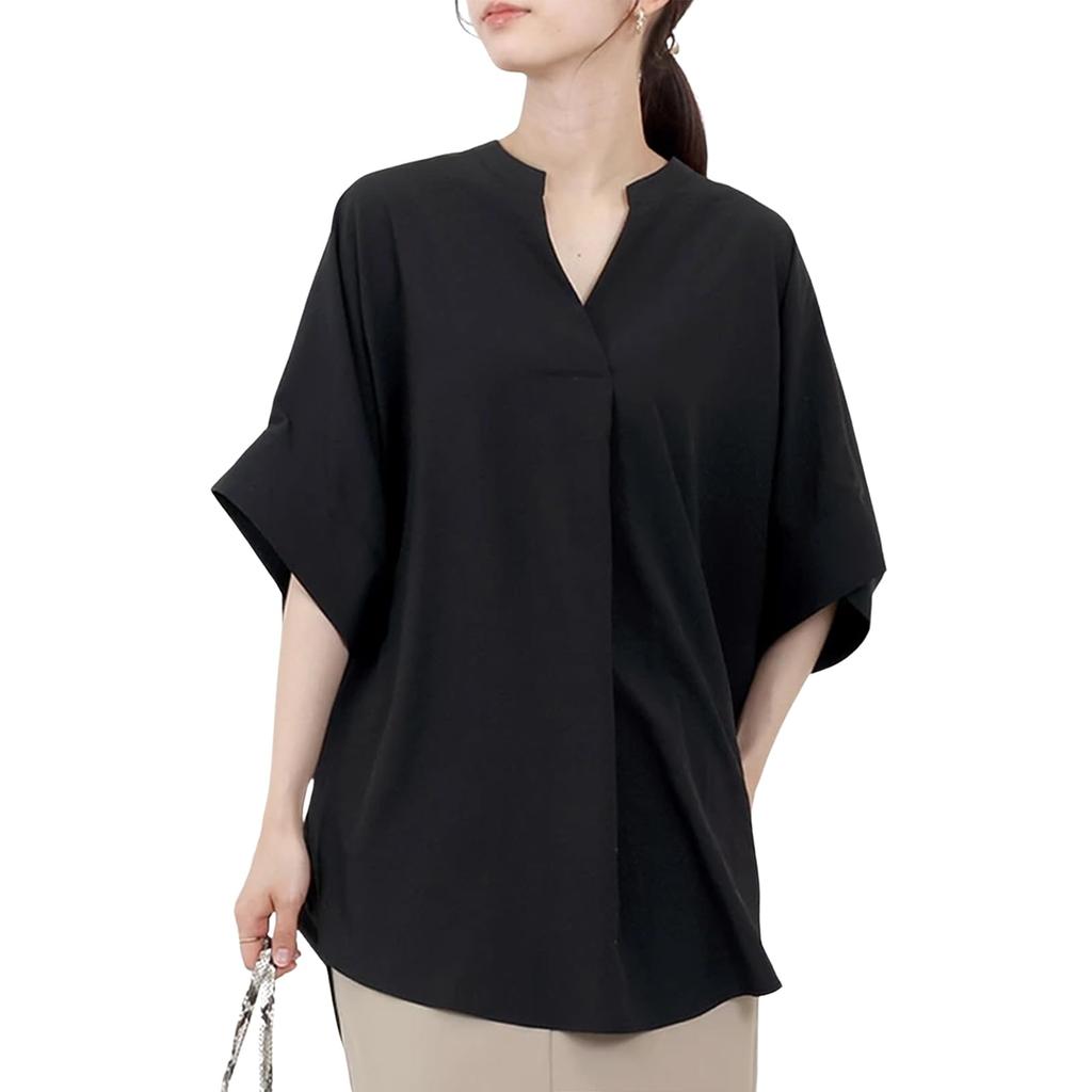 Блузки с коротким рукавом долман и летние большие свободные накидки для тела офис взрослый элегантный [SeiunAn] женщины, рубашки, рукава, лето, V-образный вырез, рукава, 5/8