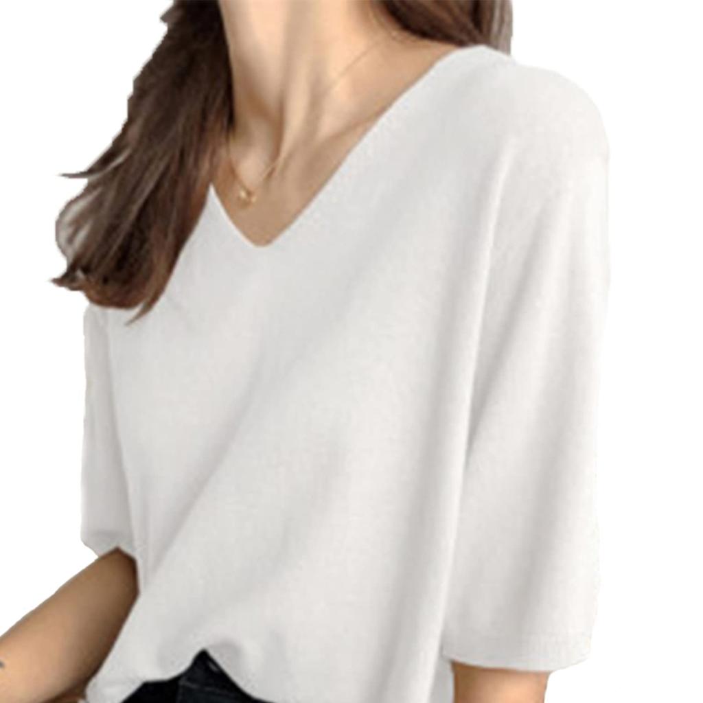 Летний трикотажный топ с коротким рукавом, свободного кроя и модный. Летняя красивая координация [ANCKDOCE] Женская футболка, V-образный вырез, прилегающая, сшитая, одежда, топы, (белый) — купить товар онлайн с бесплатной доставкой по всему миру!
