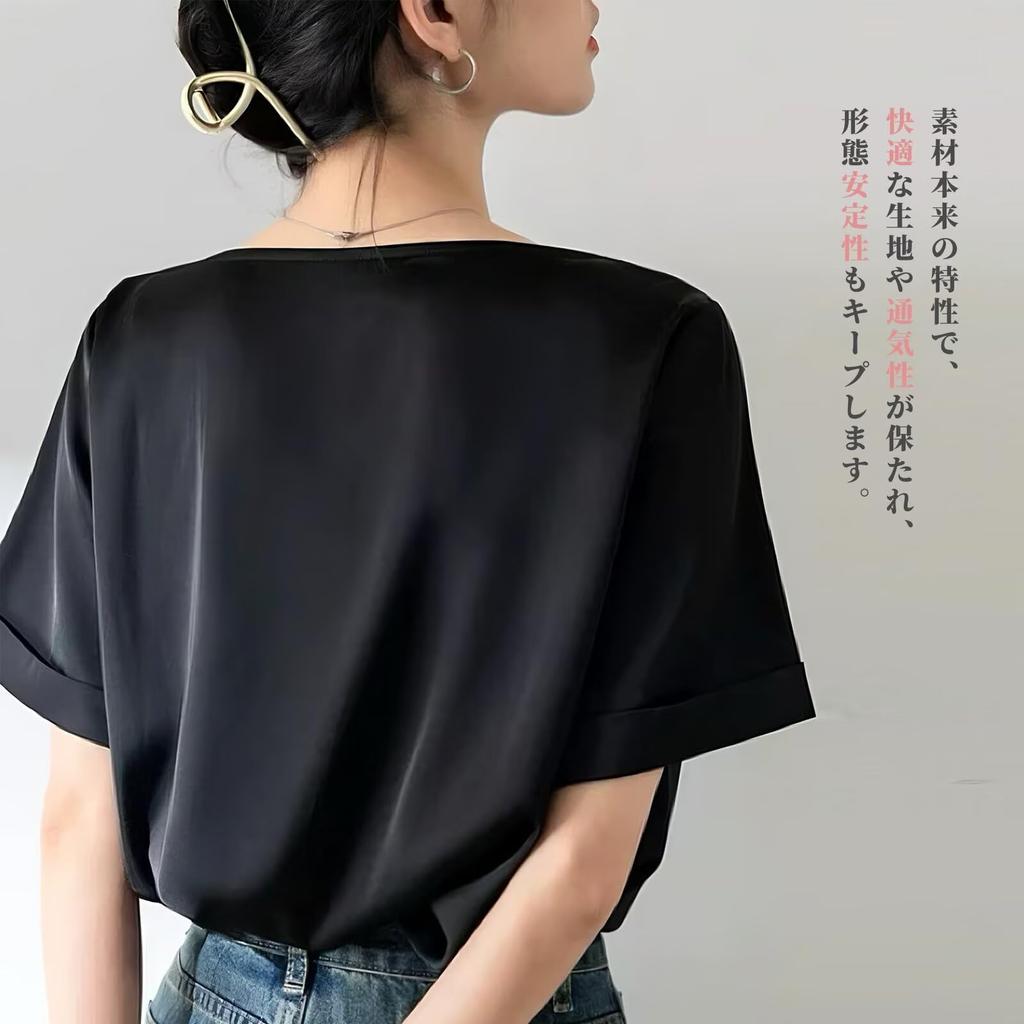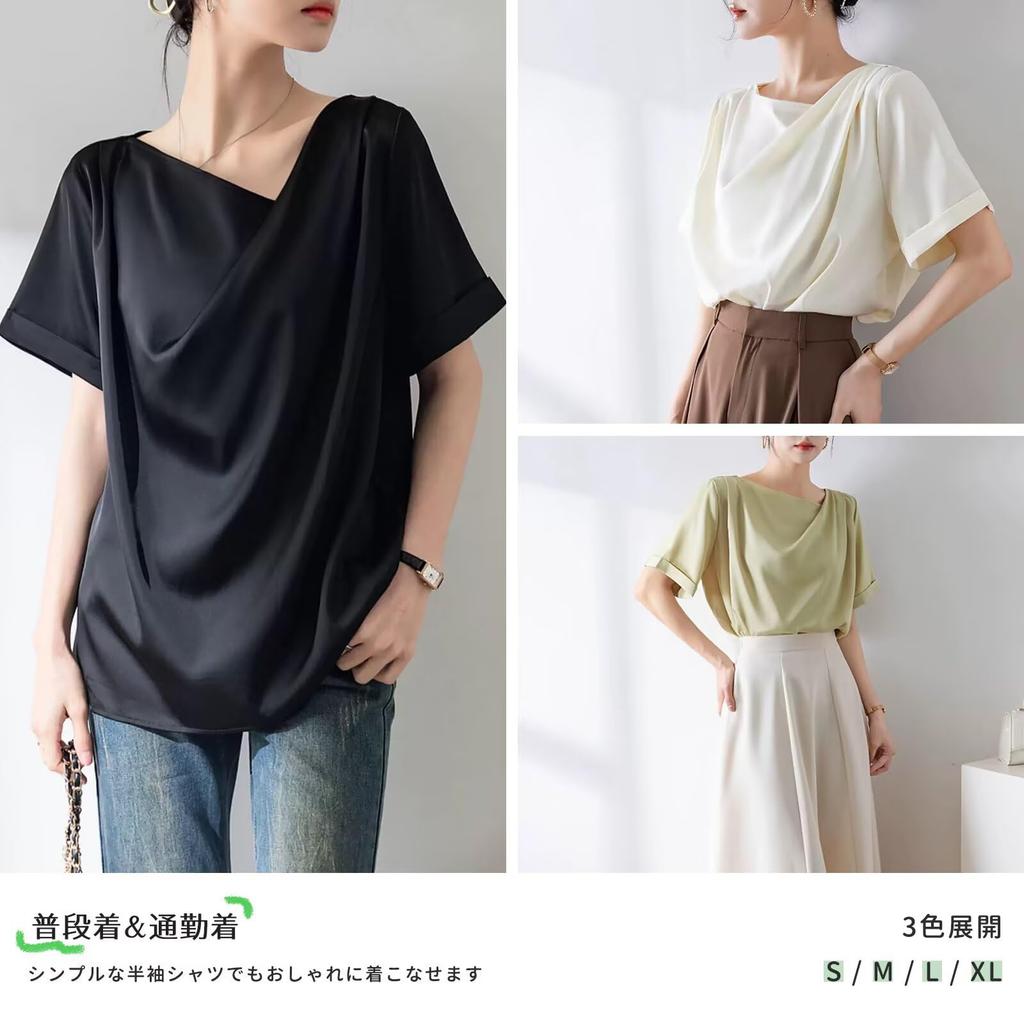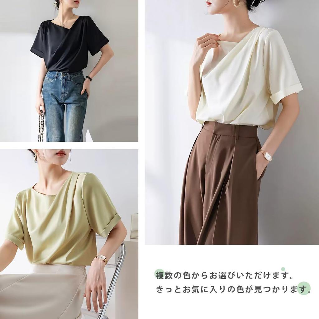 Крутая к короткому крою и драпированному свободному силуэту для поездок на работу [Тихая волна] Женская футболка, на ощупь, рукав, Лето, Топ, сшитый, горловина, посадка, Стройнящий, прикрывающий,