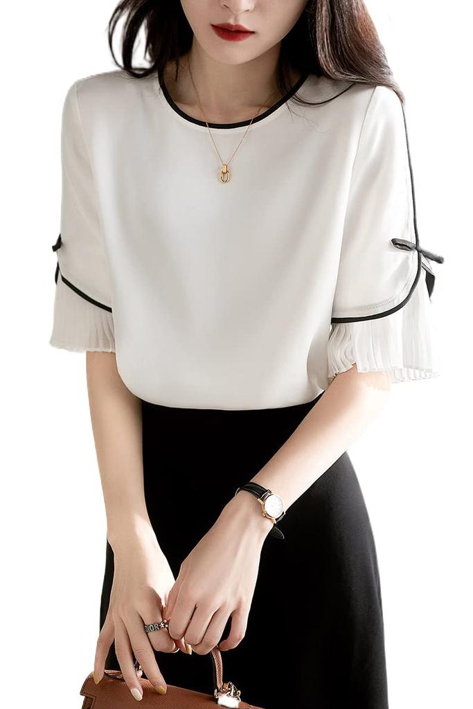 Блузка Летний Топ Короткий Рукав Круглый Вырез Пуловер Шифон Плиссированные Рукава Свободный Крой Стильный Женственный Чистый [Seira] Женская Футболка — купить товар онлайн с бесплатной доставкой по всему миру!