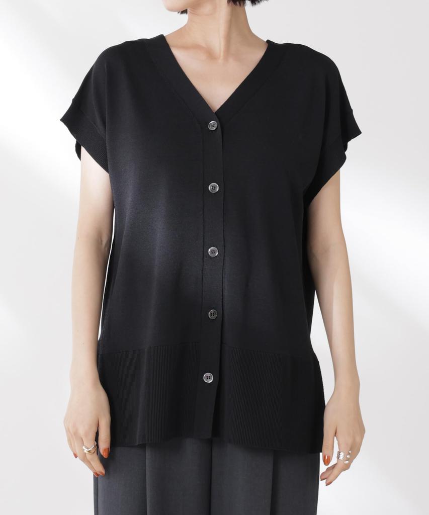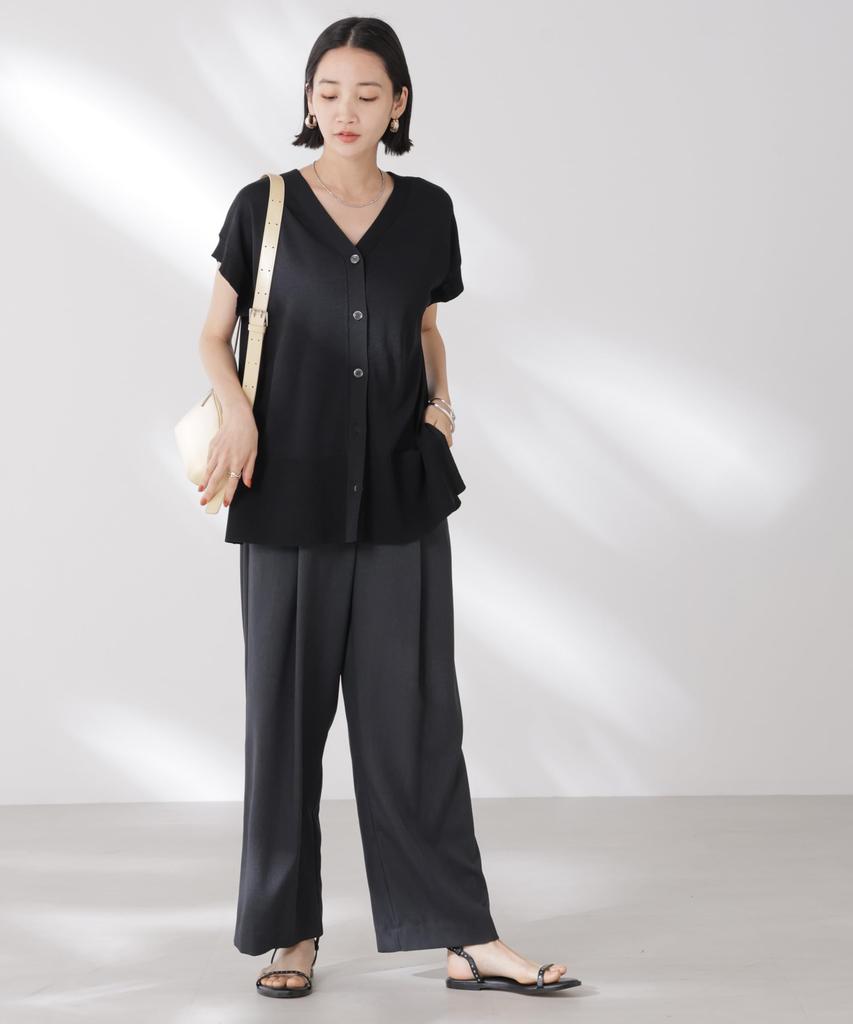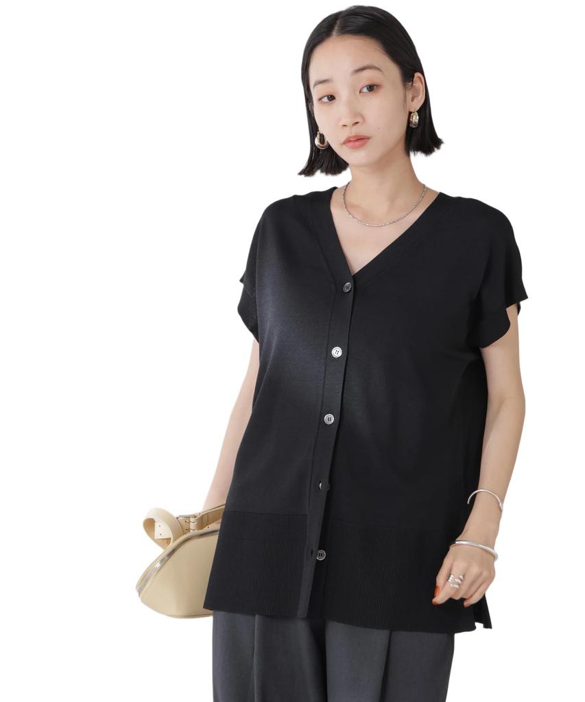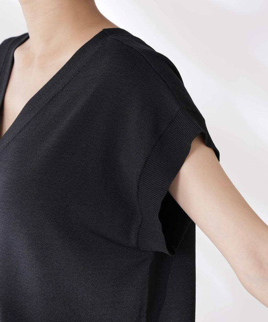■ Дизайн ・Двухцветный дизайн для аккуратного вида ・Дизайн 2-в-1 с V-образным и круглым вырезом ・Французские рукава, которые естественно закрывают плечи и верхнюю часть рук